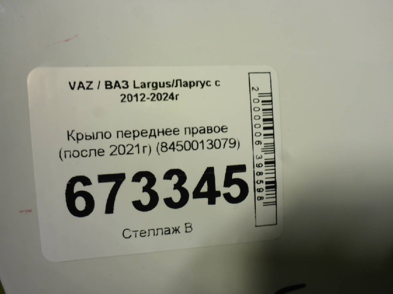 Деталь: Lada Largus - Крыло переднее правое (после 2021г) (8450013079)