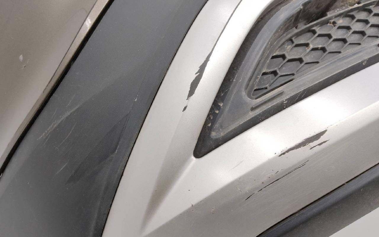 Состояние детали хорошее. Коричневого цвета под парктроники. Царапины. Отсутствует одно крепление под юбку. Потребуется незначительный ремонт