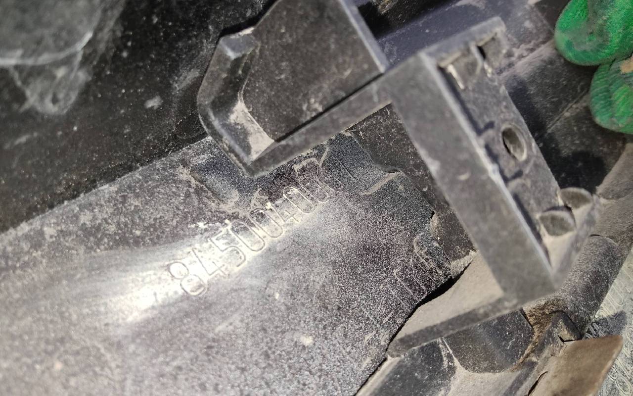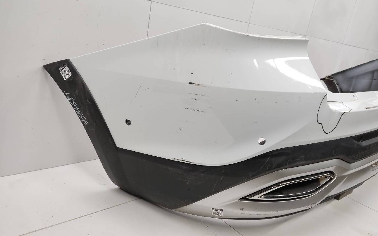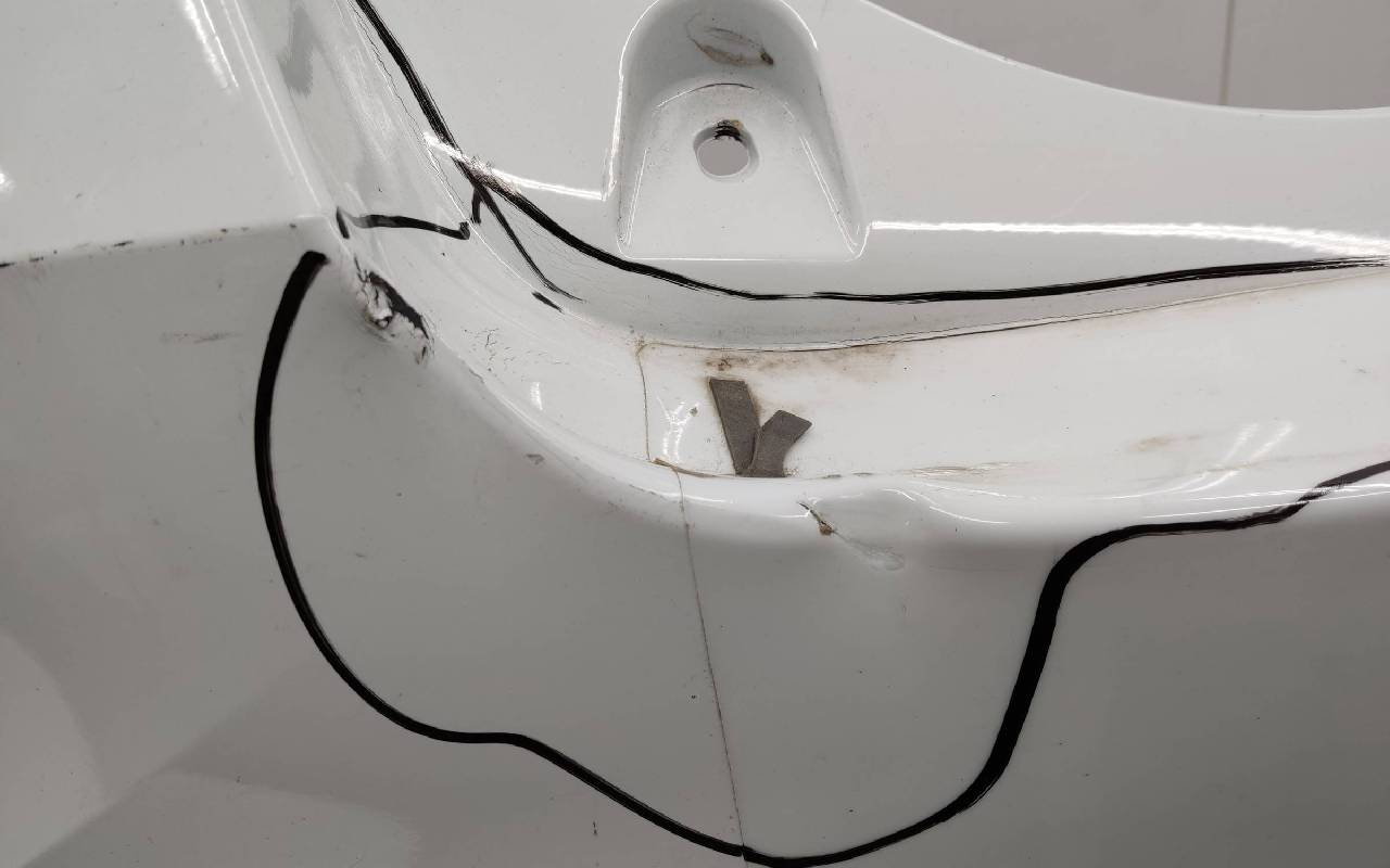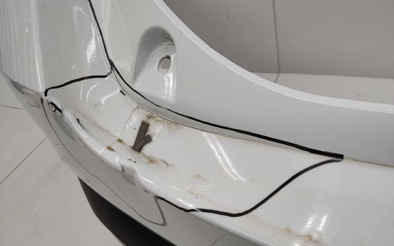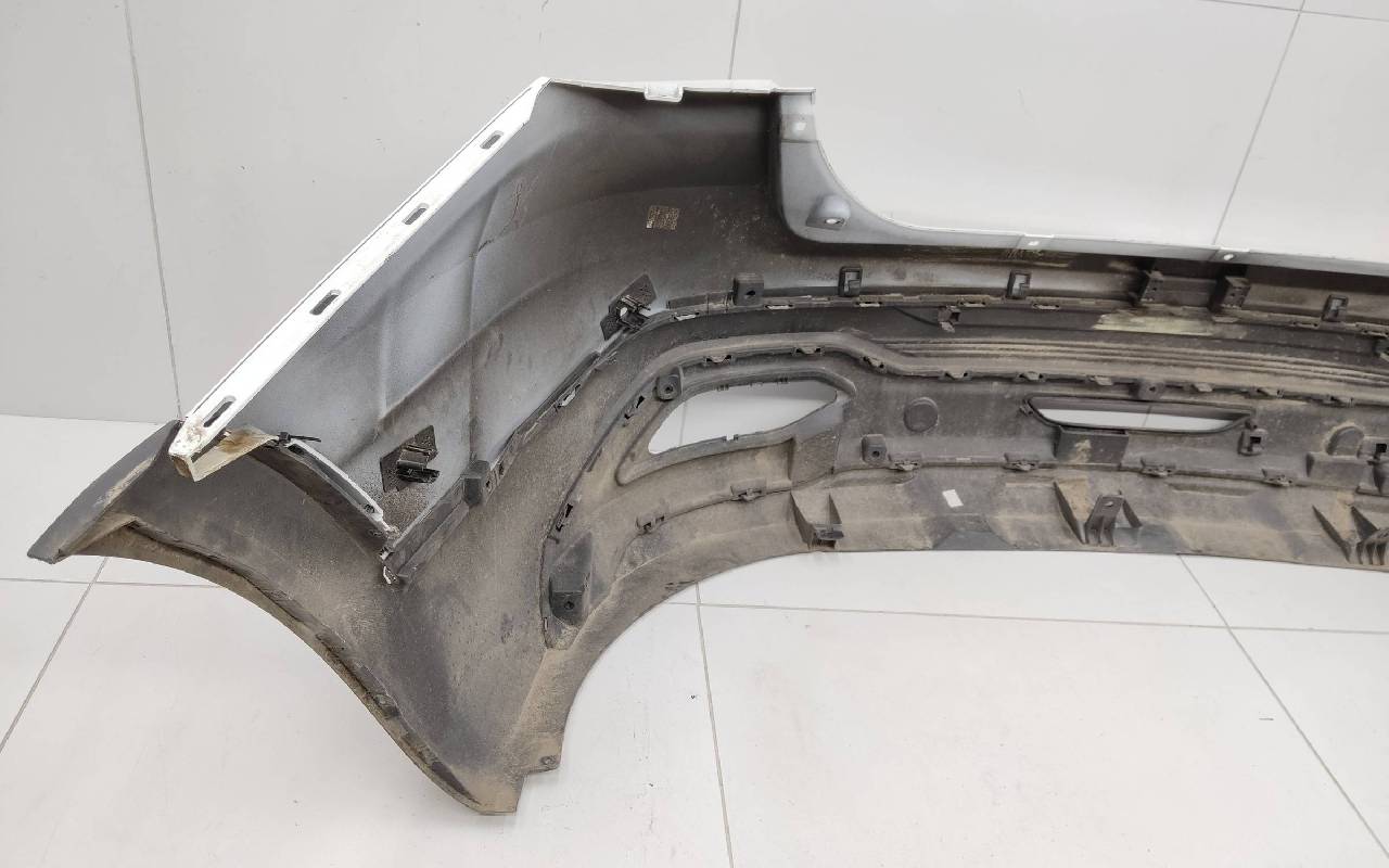 Состояние детали удовлетворительное. Белого цвета под парктроники. Вмятина на полке. Царапины. Крепления целые. Потребуется ремонт