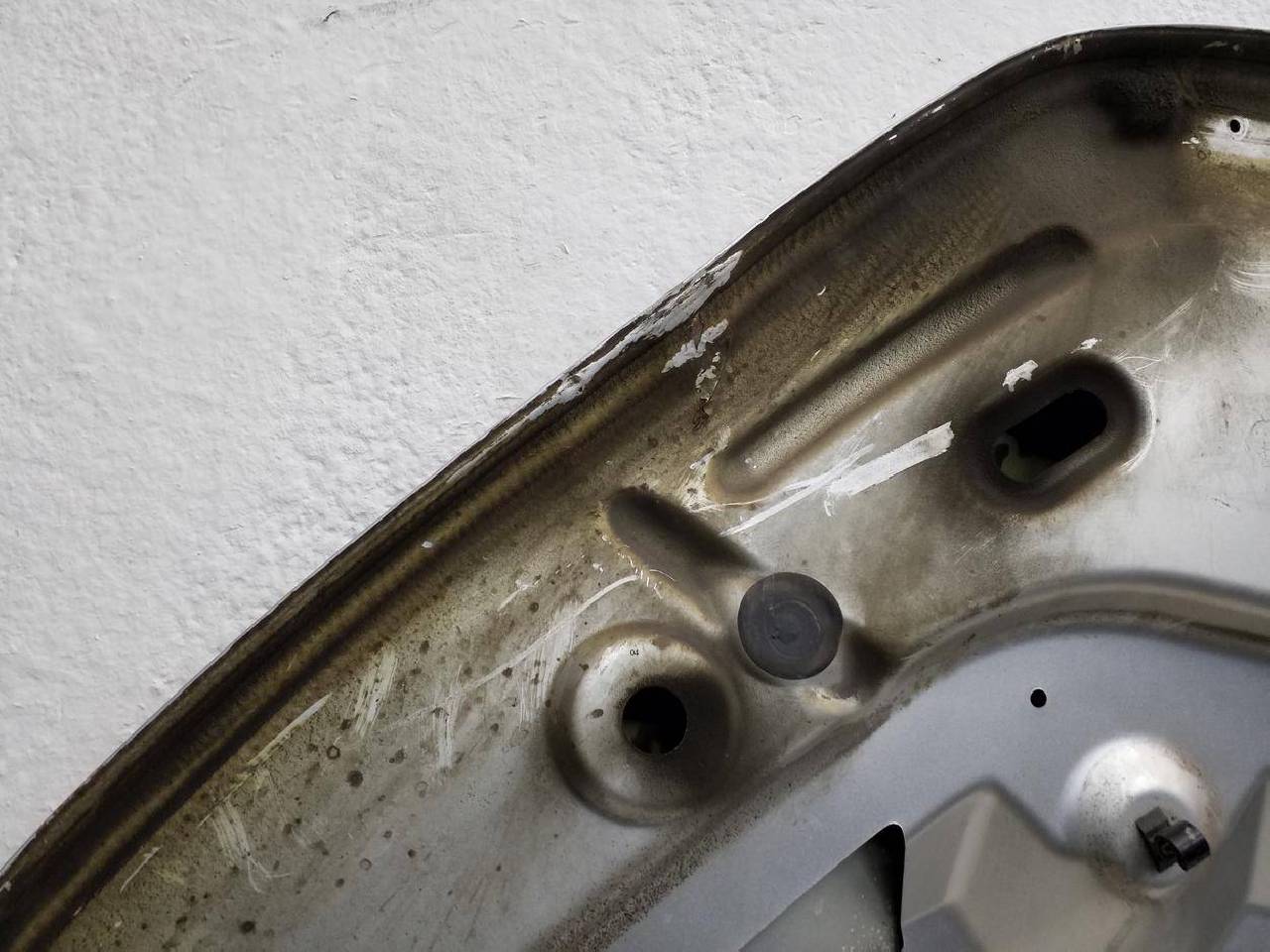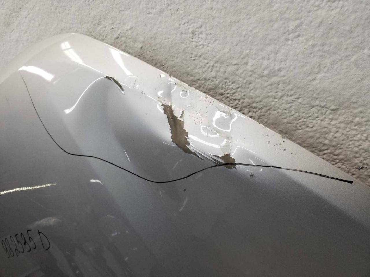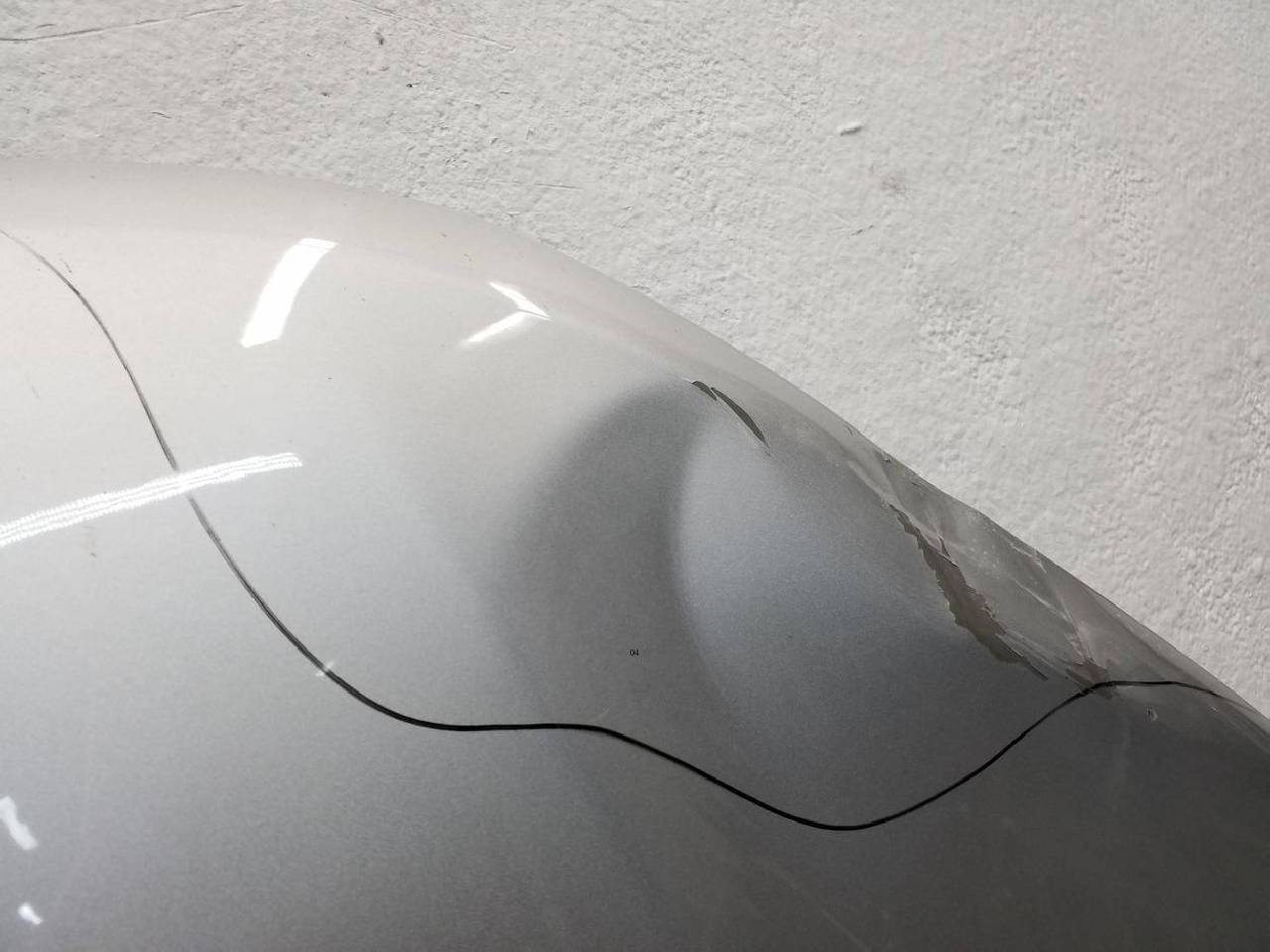 Состояние детали удовлетворительное. Серебристого цвета,скол ЛКП. Вмятины на внешней и внутренней поверхности. Под ремонт