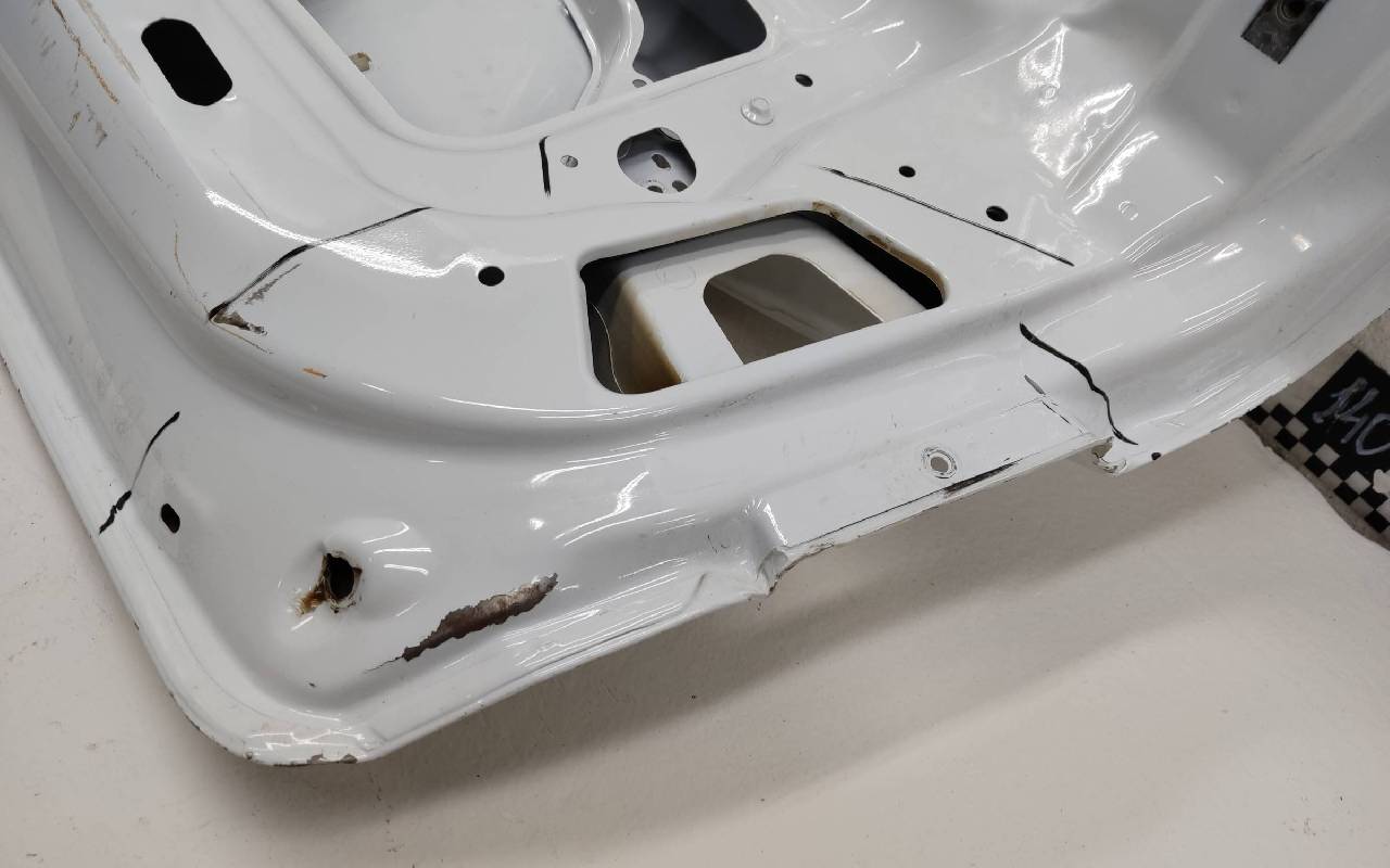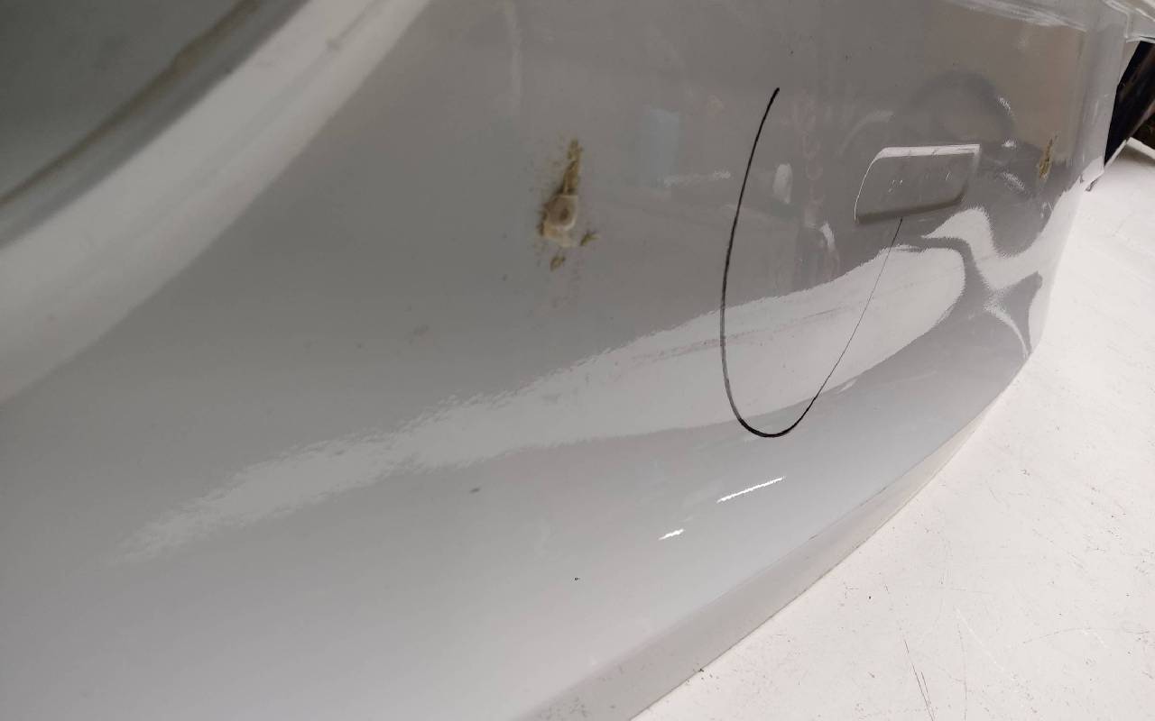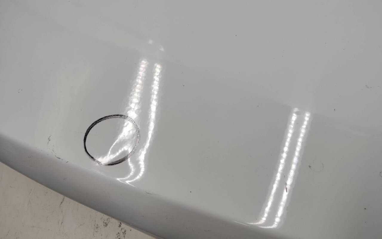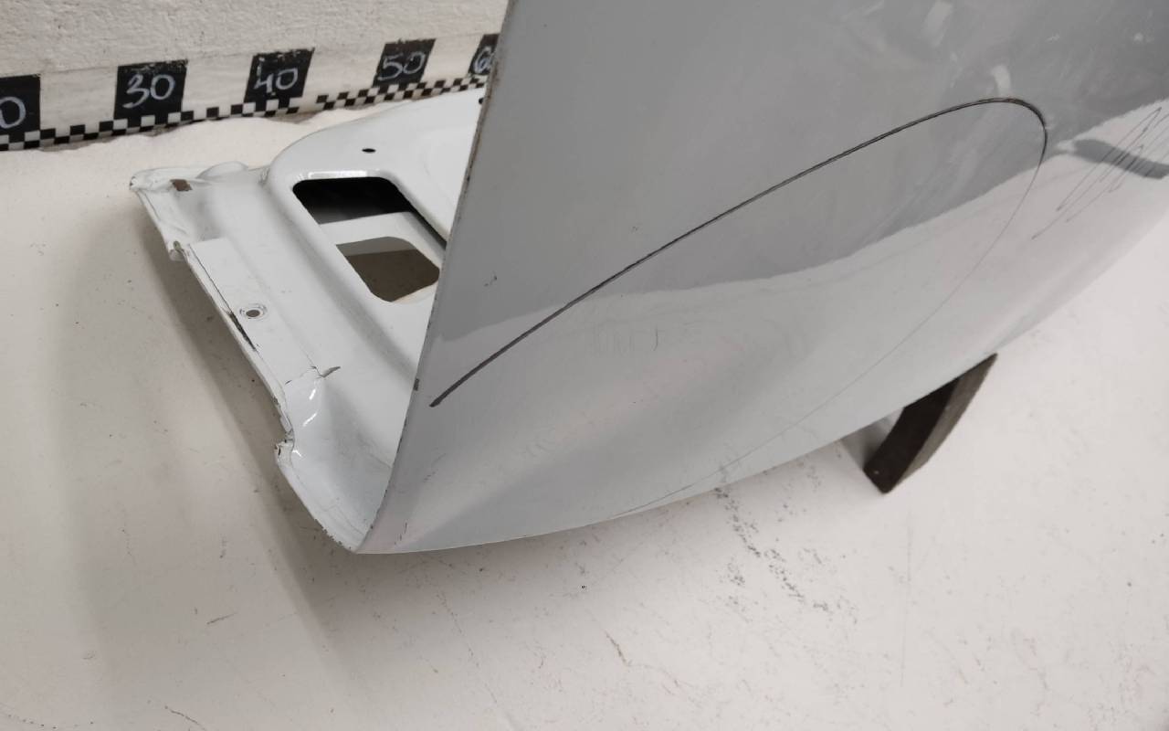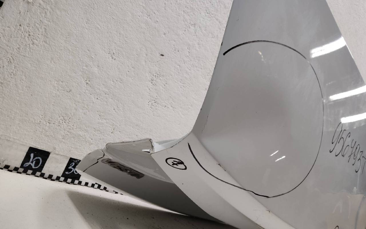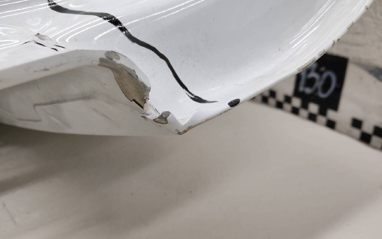 Состояние детали удовлетворительное. Белого цвета, скол ЛКП. Вмятины на внешней и внутренней поверхности. Потребуется ремонт