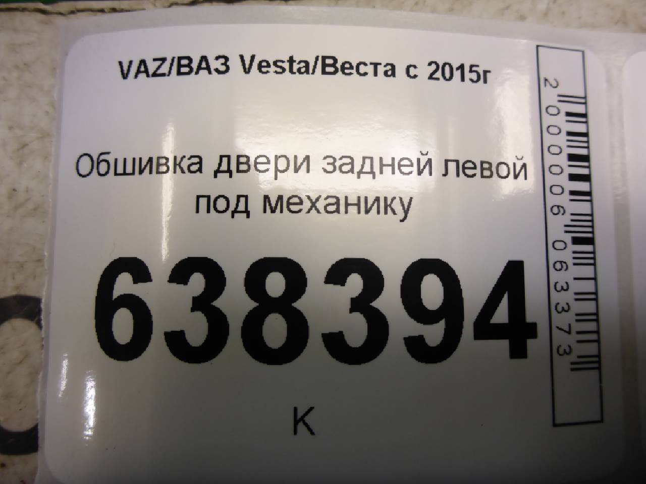 Деталь: Lada Vesta - Обшивка двери задней левой под механику (8450030007)