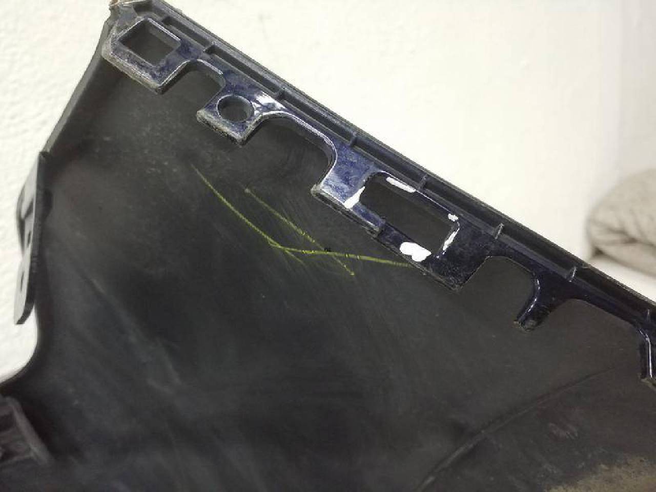 Состояние детали хорошее. Синего цвета,потертость поверхности, под покраску, под парктроники, под омыватели. Дефект пластика на фото. Под ремонт