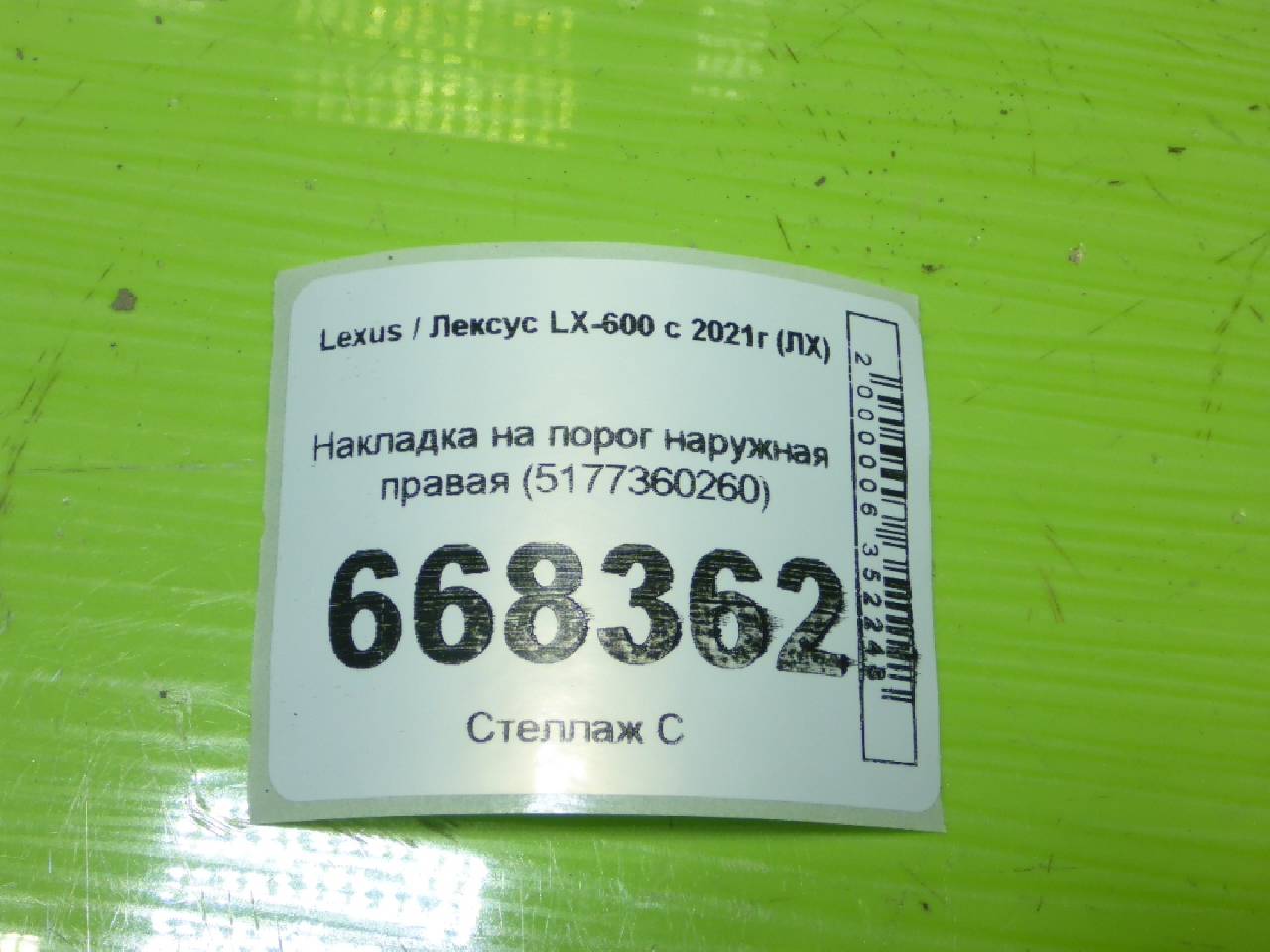 Деталь: Lexus LX 4 - Накладка на порог наружная правая (5177360260)