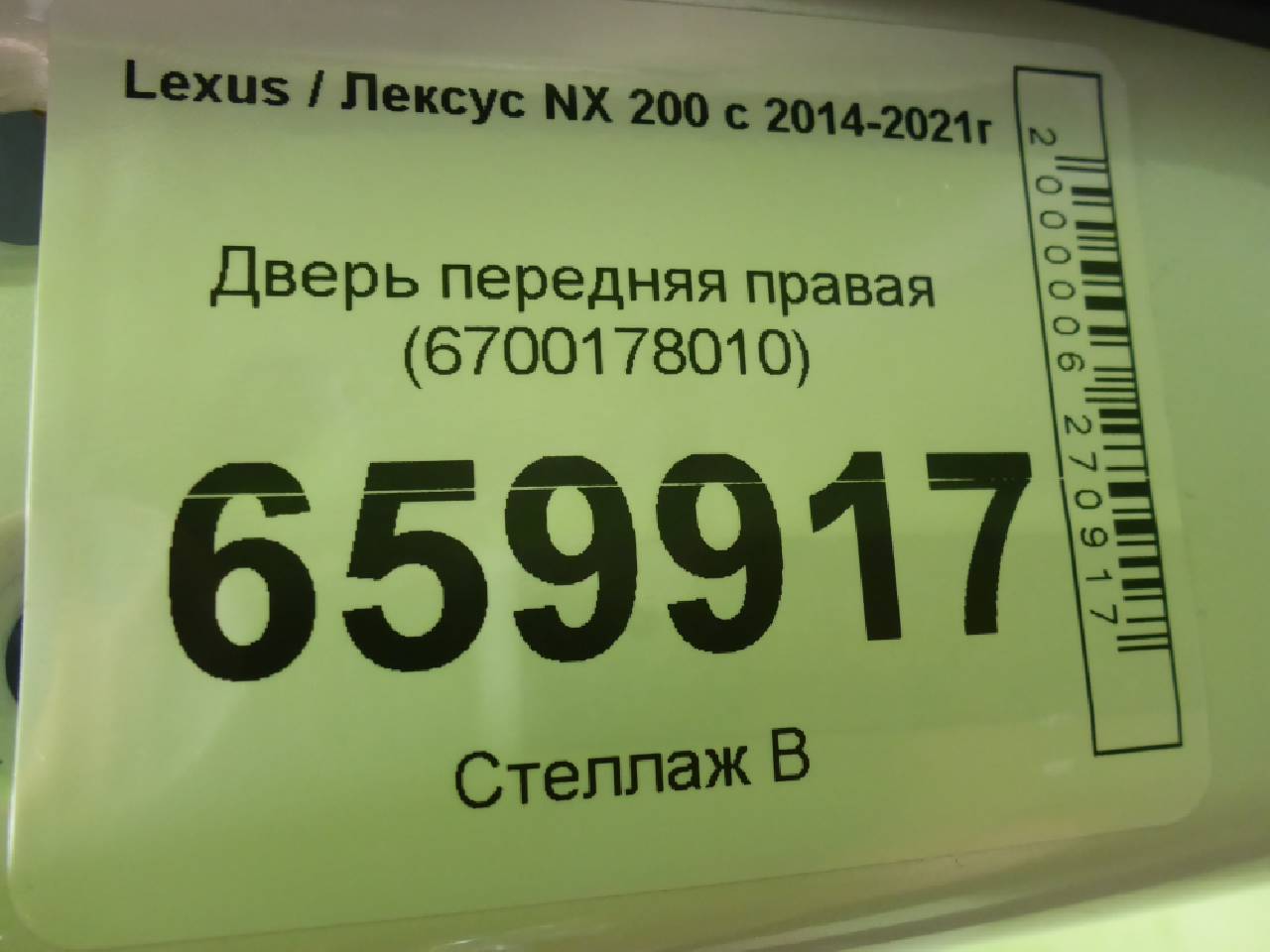 Купить Дверь передняя правая (6700178010) 6700178010 для Lexus NX (Лексус НИкс) RR659917 ✓ с доставкой по Москве и России