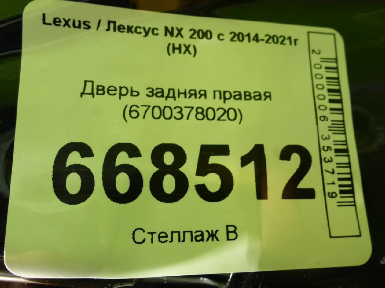 Купить Дверь задняя правая (6700378020) 6700378020 для Lexus NX (Лексус НИкс) RR668512 ✓ с доставкой по Москве и России
