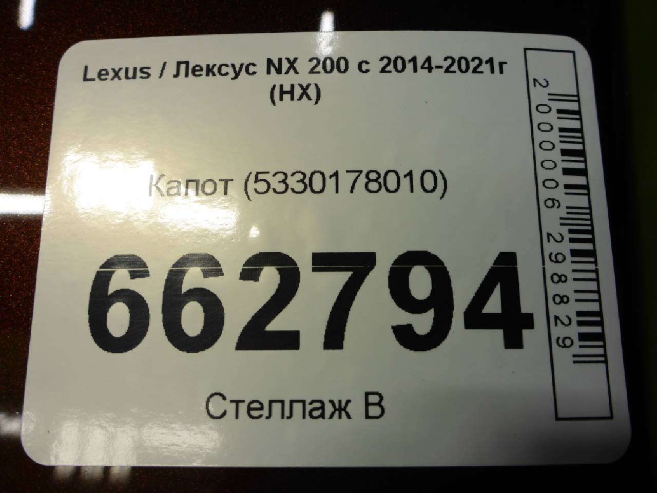 Купить Капот (5330178010) 5330178010 для Lexus NX (Лексус НИкс) RR662794 ✓ с доставкой по Москве и России