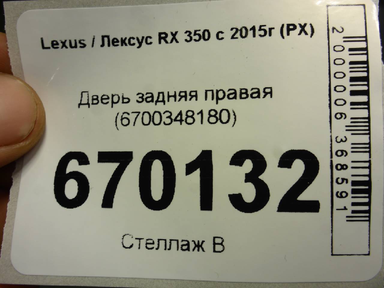 Купить Дверь задняя правая (6700348180) 6700348180 для Lexus RX 3 (Лексус РИкс 3) RR670132 ✓ с доставкой по Москве и России