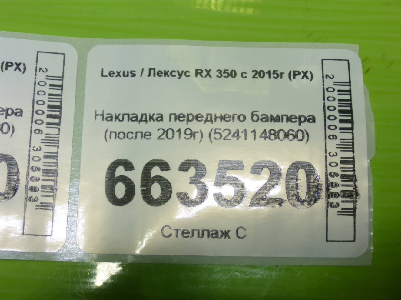 Деталь: Lexus RX 3 - Накладка переднего бампера (после 2019г) (5241148060)