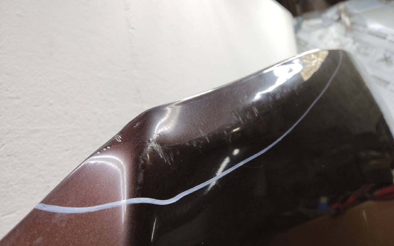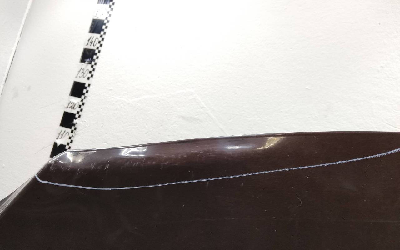 Состояние детали хорошее. Коричневого цвета в плёнке. Дефект ЛКП. Небольшие вмятины в передней части и на внутренней поверхности. Потребуется незначительный ремонт