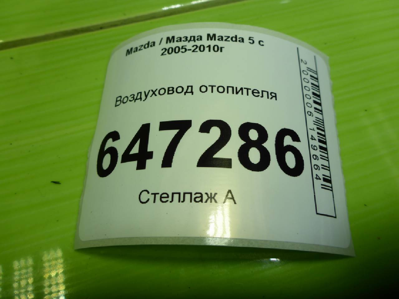 Купить Воздуховод отопителя (СС296494Y) СС296494Y для Mazda 5 CR (Мазда 5 ЦР) RR647286 ✓ с доставкой по Москве и России