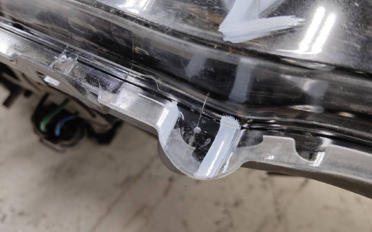 Состояние детали хорошее. Трещинки по кромке стекла в области креплений к корпусу. Отсутствует фрагмент кронштейна на два крепления. Потребуется ремонт