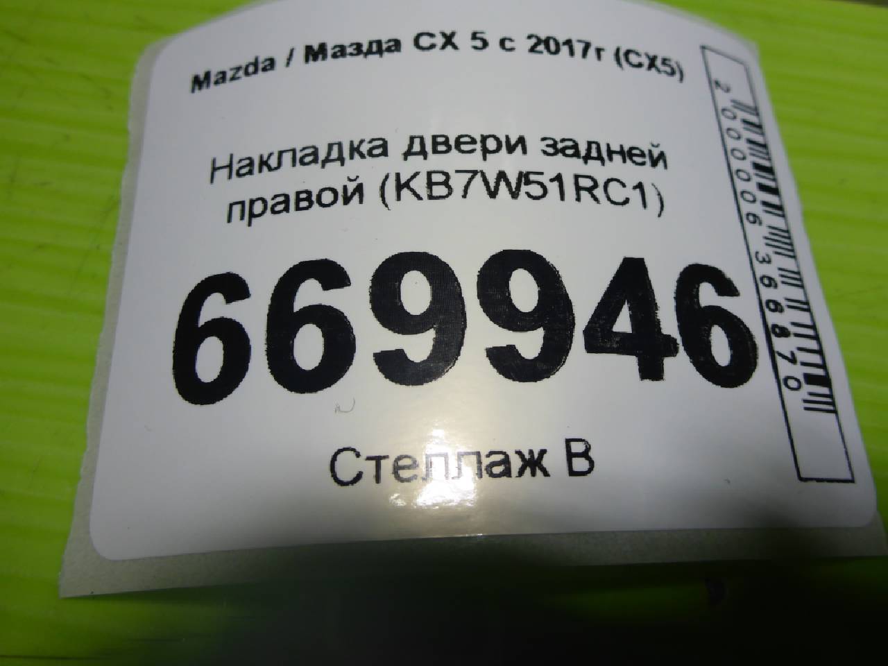 Деталь: Mazda CX-5 2 - Накладка двери задней правой (KB7W51RC1)