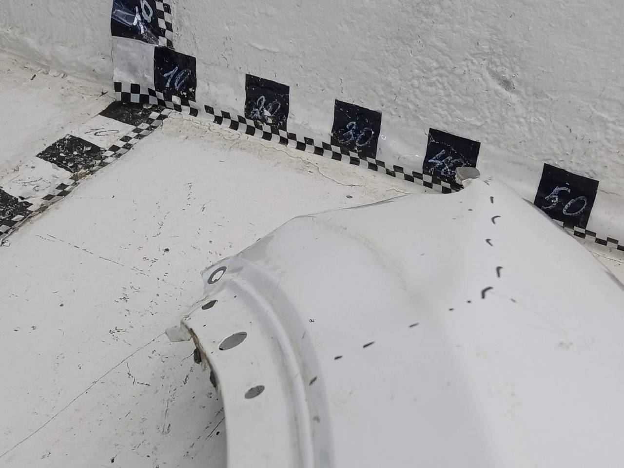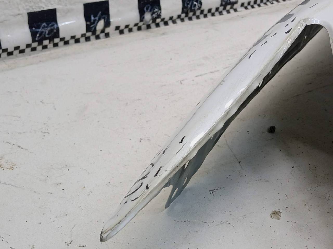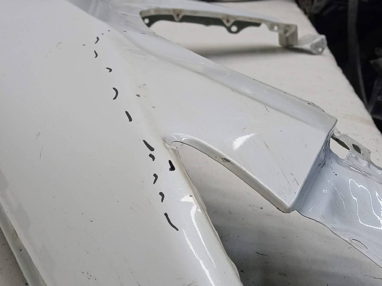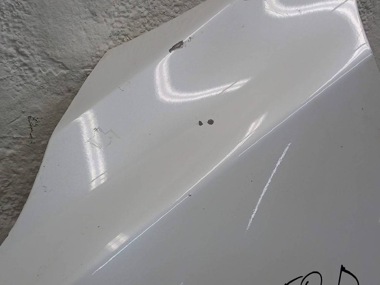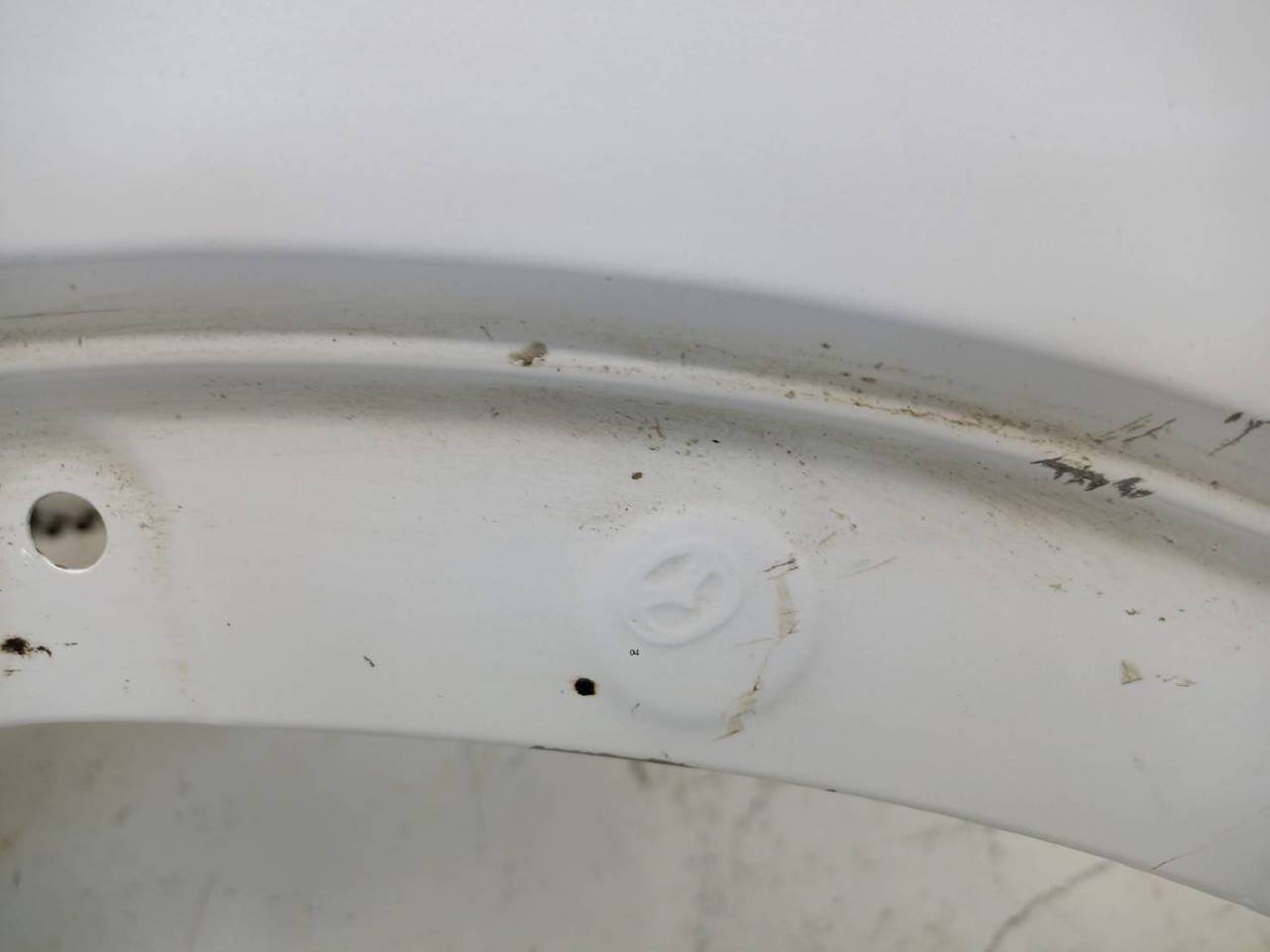 Состояние детали хорошее. Белого цвета,скол ЛКП,вмятины. Крепления целые. Ремонтопригодно