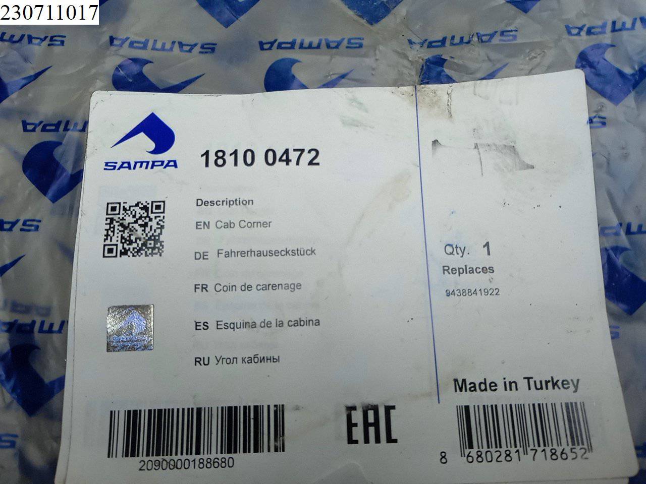 Номер детали: A9438841922;18100472