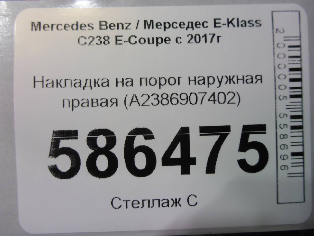 Деталь: Mercedes-Benz C238 E-Klasse - Накладка на порог наружная правая (A2386907402)