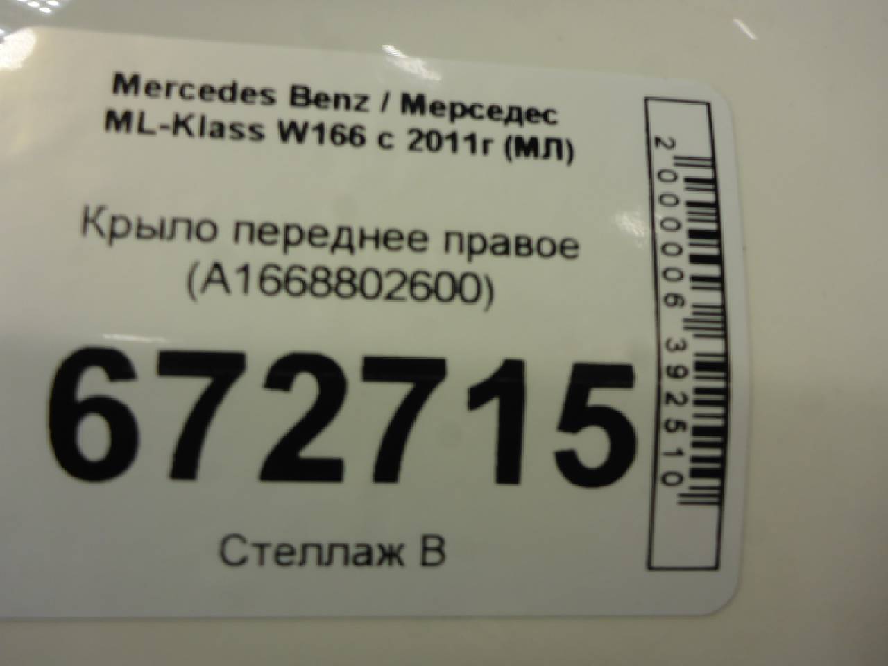 Купить Крыло переднее правое (A1668802600) A1668802600 для Mercedes-Benz W166 GLE-Klasse (Мерседес Бенц W166 Гле класс) RR672715 ✓ с доставкой по Москве и России