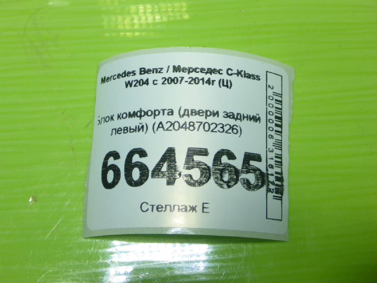 Деталь: Mercedes-Benz W204 C-Klasse - Блок комфорта (двери задний левый) (A2048702326)