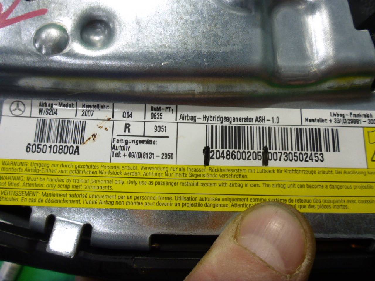 Деталь: Mercedes-Benz W204 C-Klasse - Подушка безопасности в сиденье (переднего правого) (A2048600205)