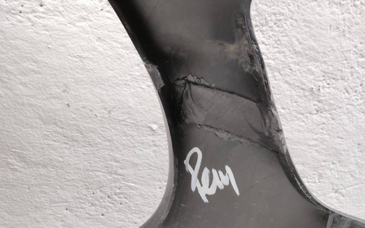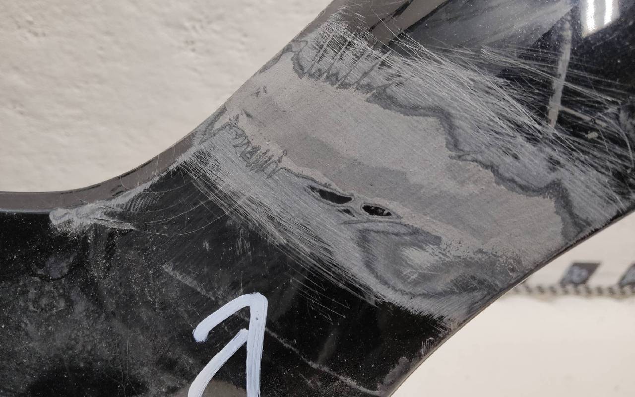 Состояние детали хорошее. Чёрного цвета под парктроники. После небольшого ремонта. Царапины. Крепления целые. Под покраску