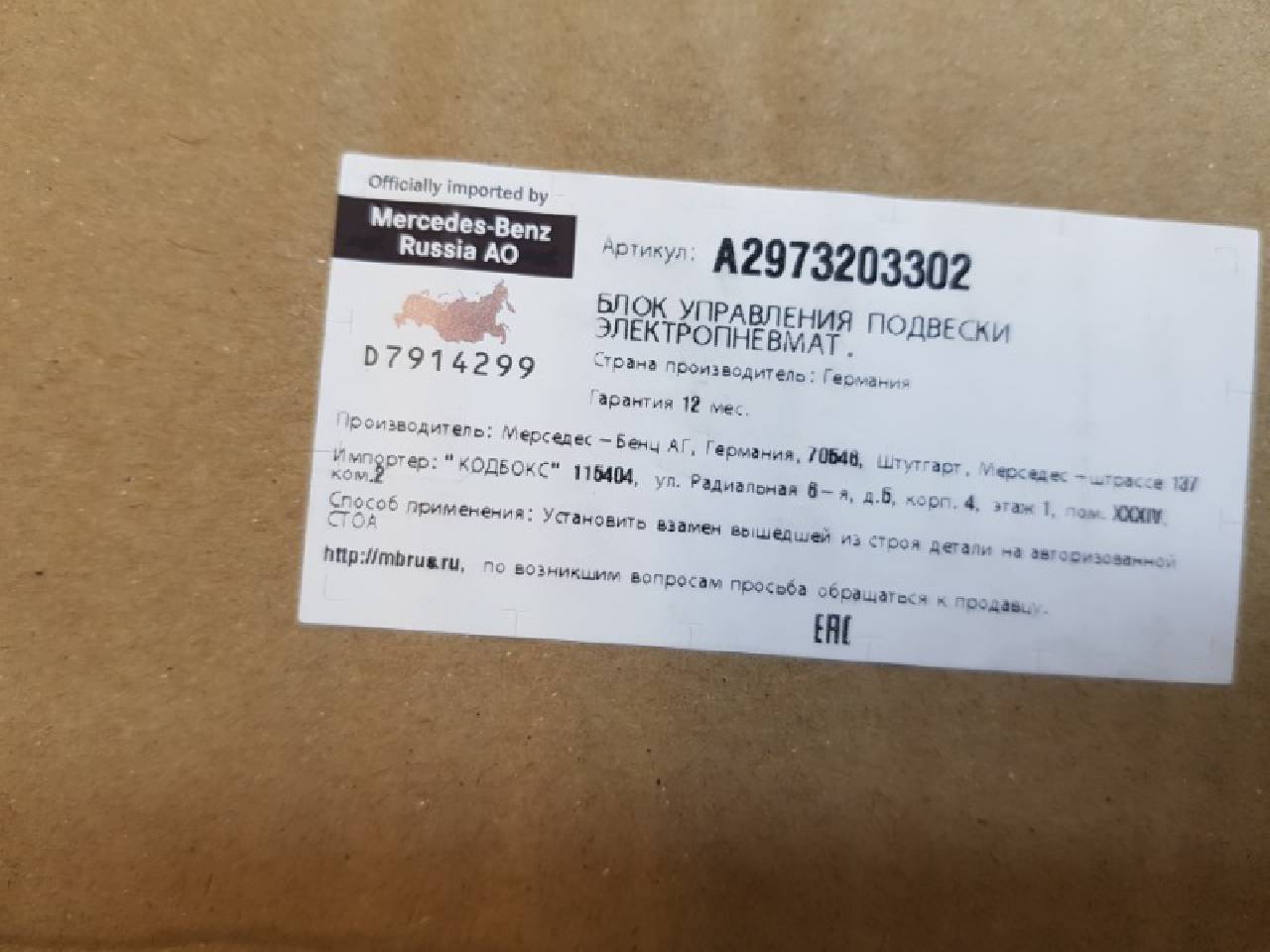 Номер детали: A2973203302