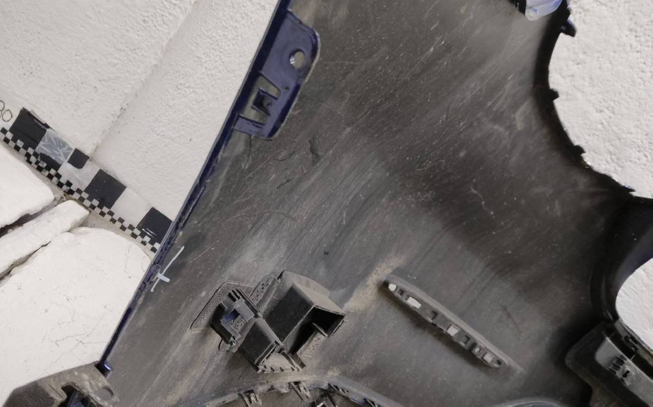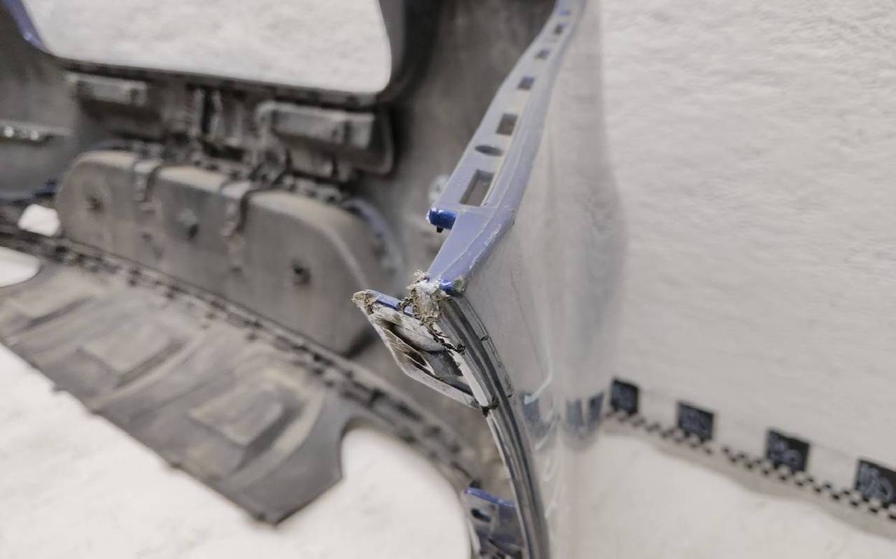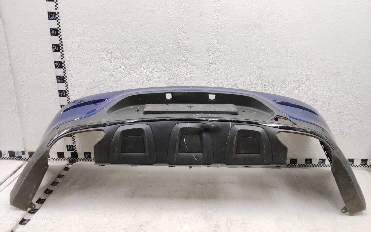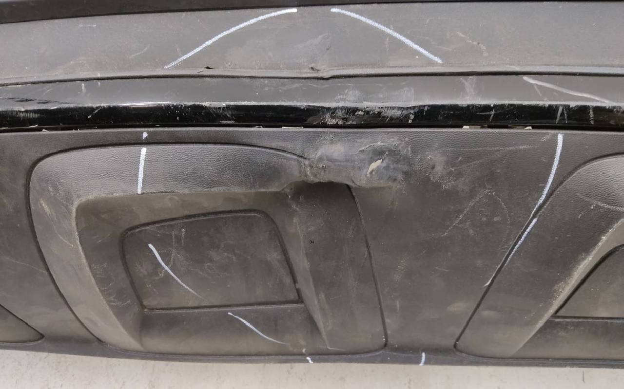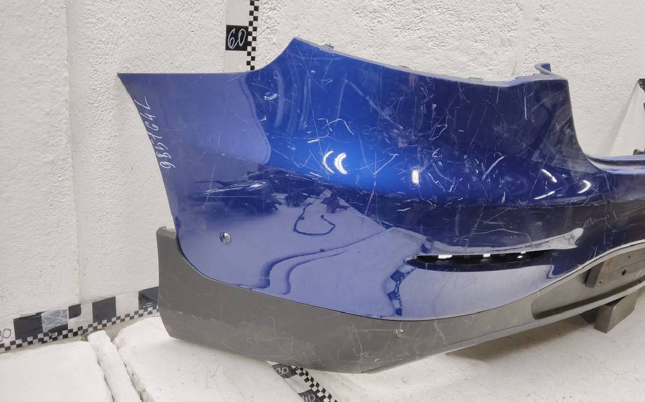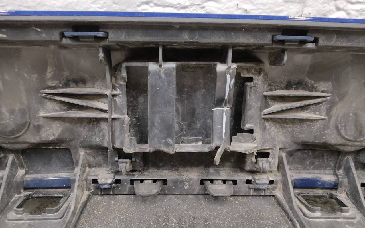 Состояние детали удовлетворительное. Синего цвета под парктроники, царапины. Вмятина, дефект пластика на нижней части. Отсутствует одно крепление. Потребуется ремонт