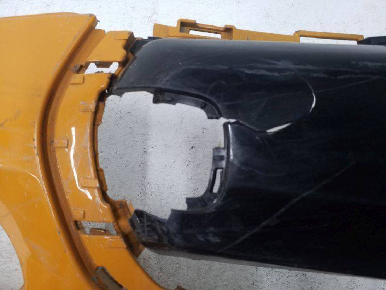Бампер передний Мини Купер f56 цвет жёлтый в сборе с накладкой дефект пластика бампера и накладки на фото дефект 2 креплений потертость поверхности б/у оригинал. . .