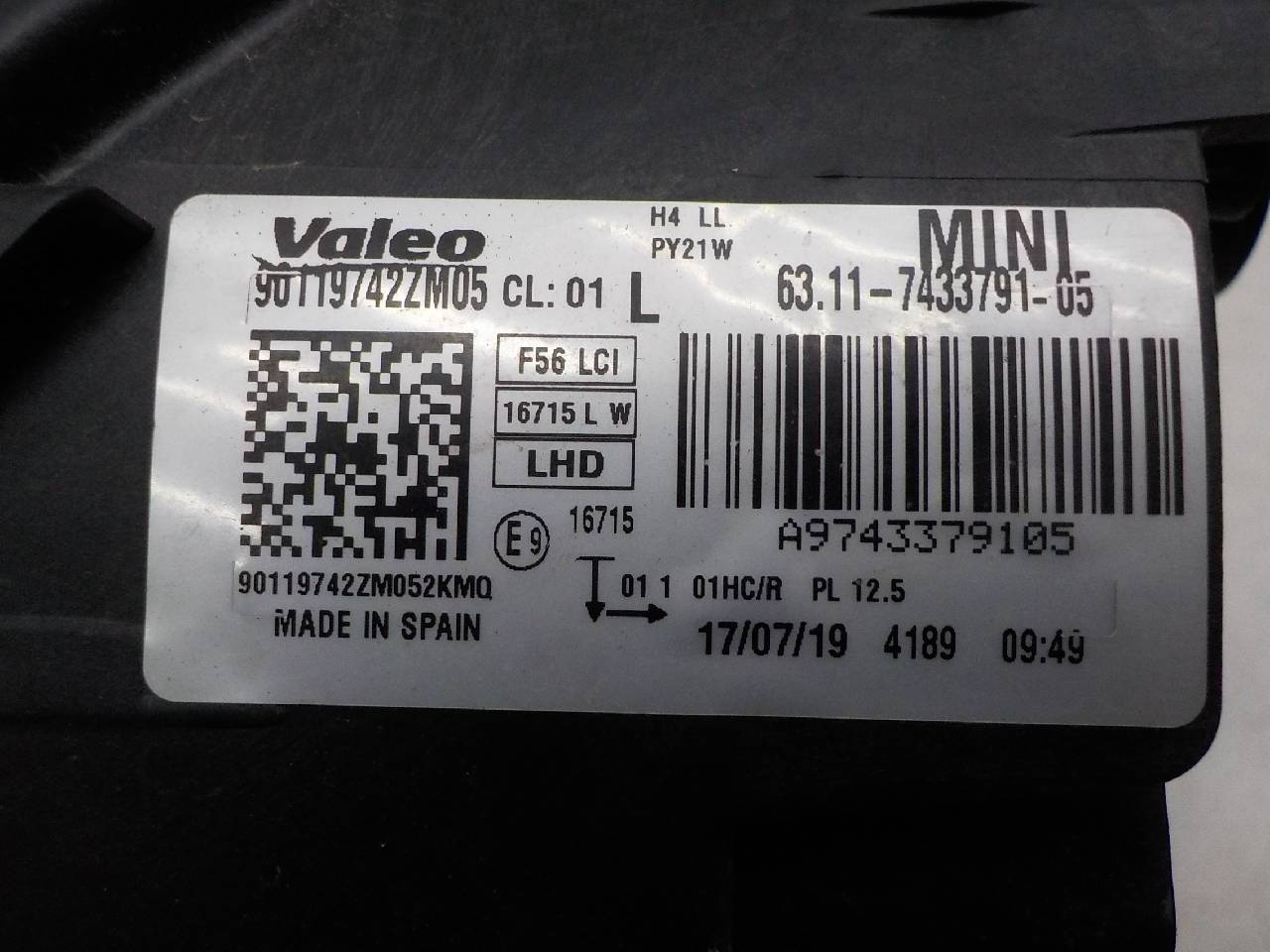 MINI Hatch III (F55/F56) 2013-2018 ОЕМ 63117433791 Галоген Оригинал Дефект стекла