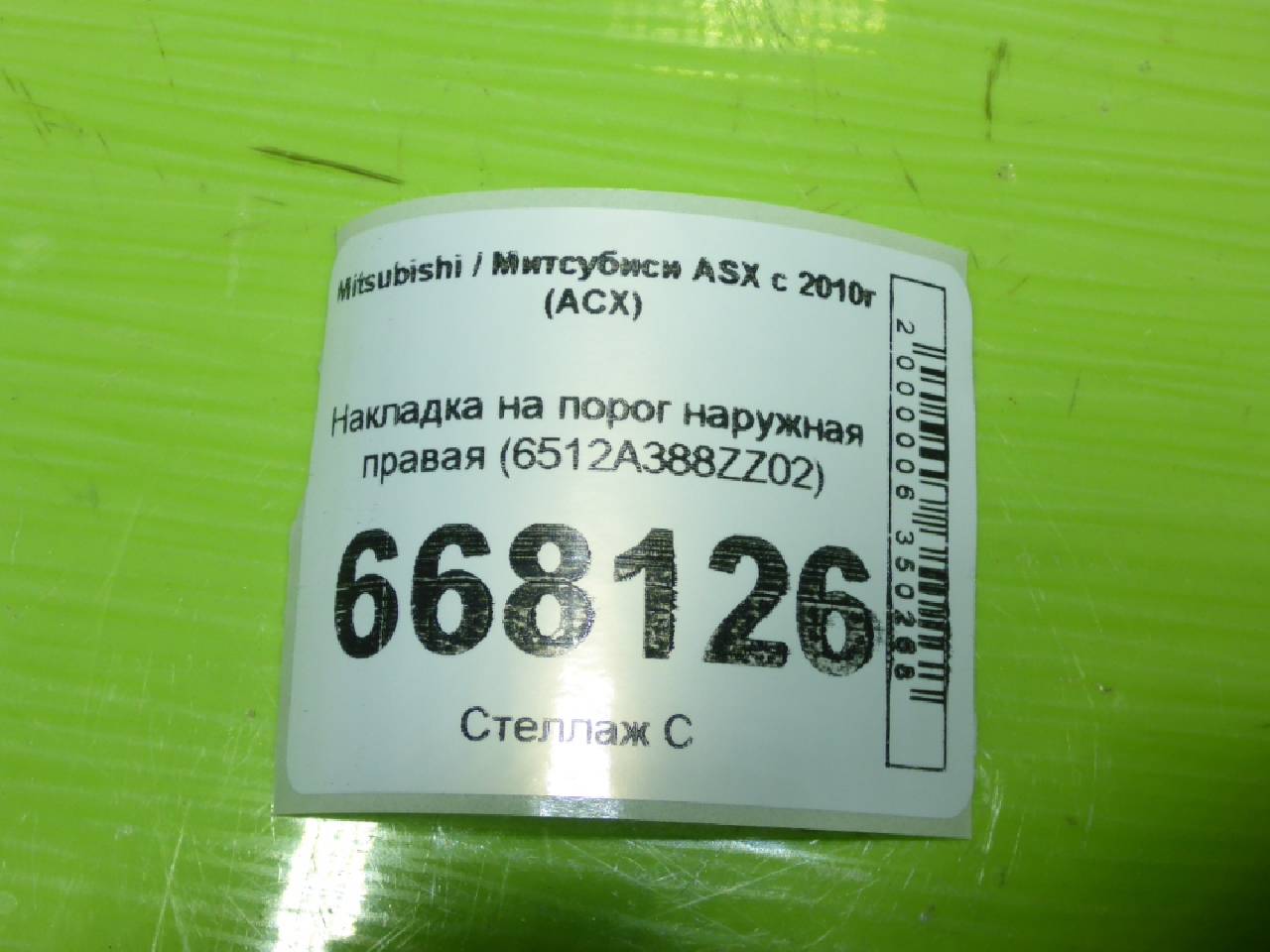 Деталь: Mitsubishi ASX - Накладка на порог наружная правая (6512A388ZZ02)