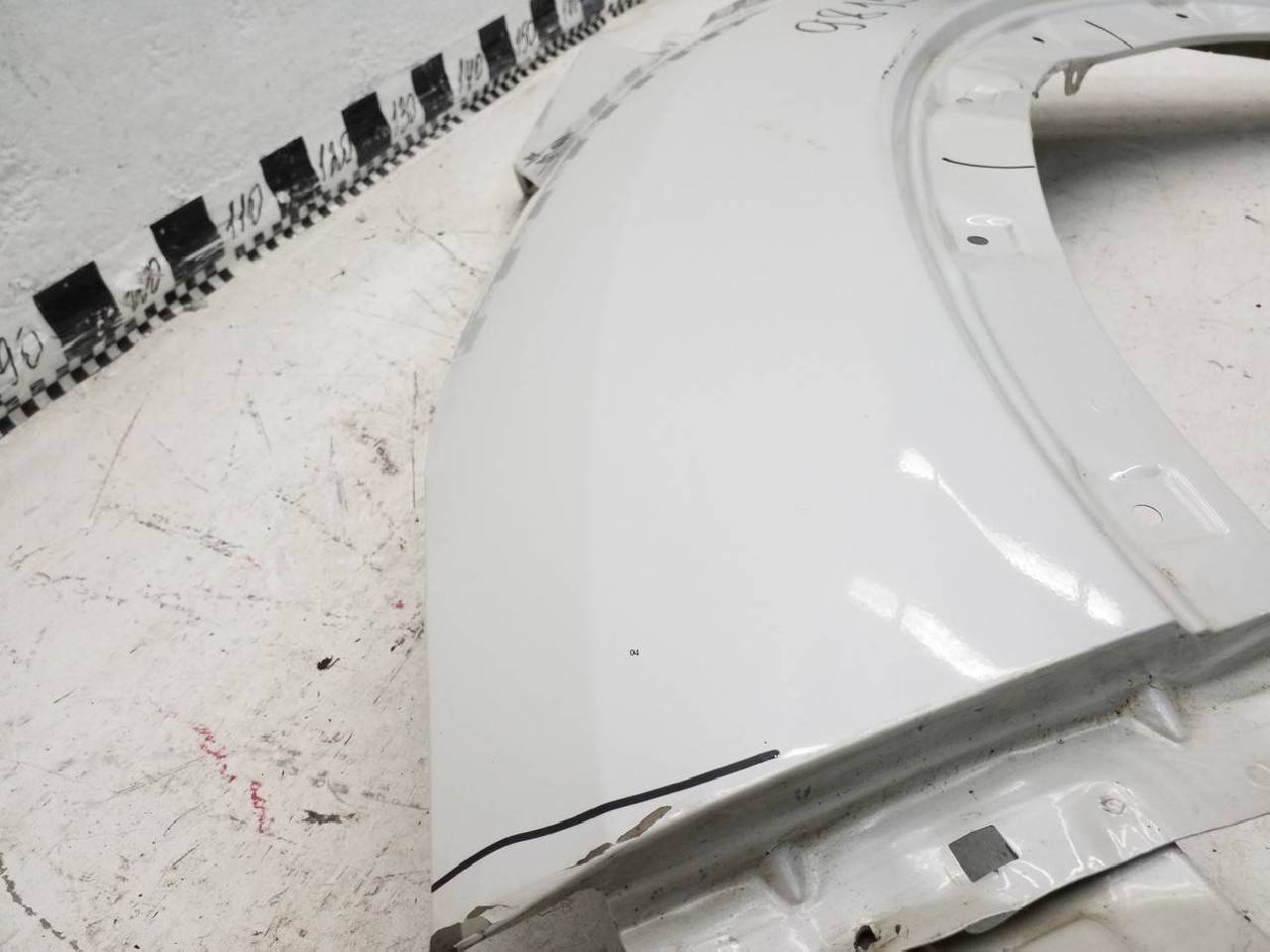 Состояние детали хорошее. Белого цвета, скол ЛКП. Небольшие вмятины. Под ремонт