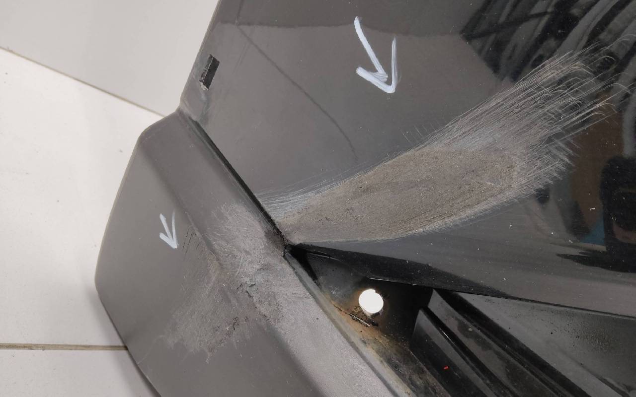 Состояние детали хорошее. Чёрного цвета. После небольшого ремонта, царапины. Крепления целые. Под покраску