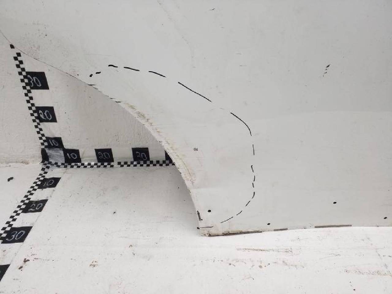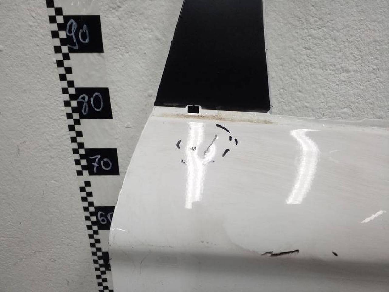 Состояние детали хорошее. Белого цвета,потертость поверхности,под покраску. Дефект металла вмятинки на фото. Под ремонт