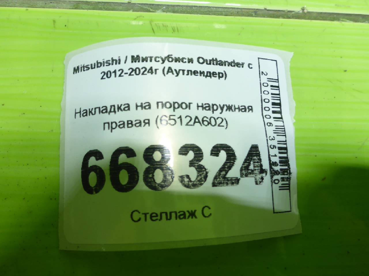 Деталь: Mitsubishi Outlander 3 - Накладка на порог наружная правая (6512A602)
