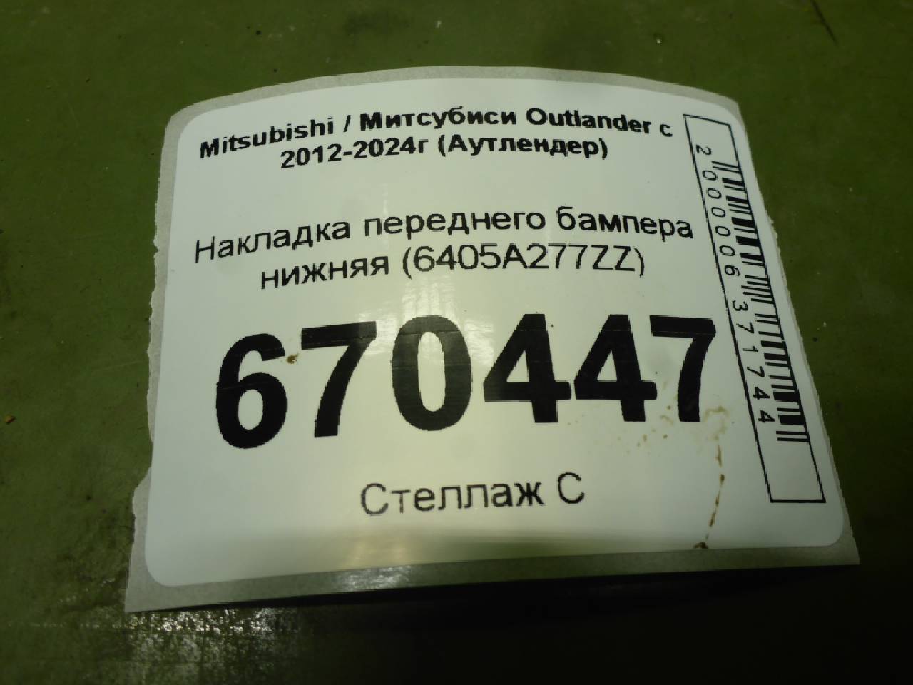 Деталь: Mitsubishi Outlander 3 - Накладка переднего бампера нижняя (6405A277ZZ)