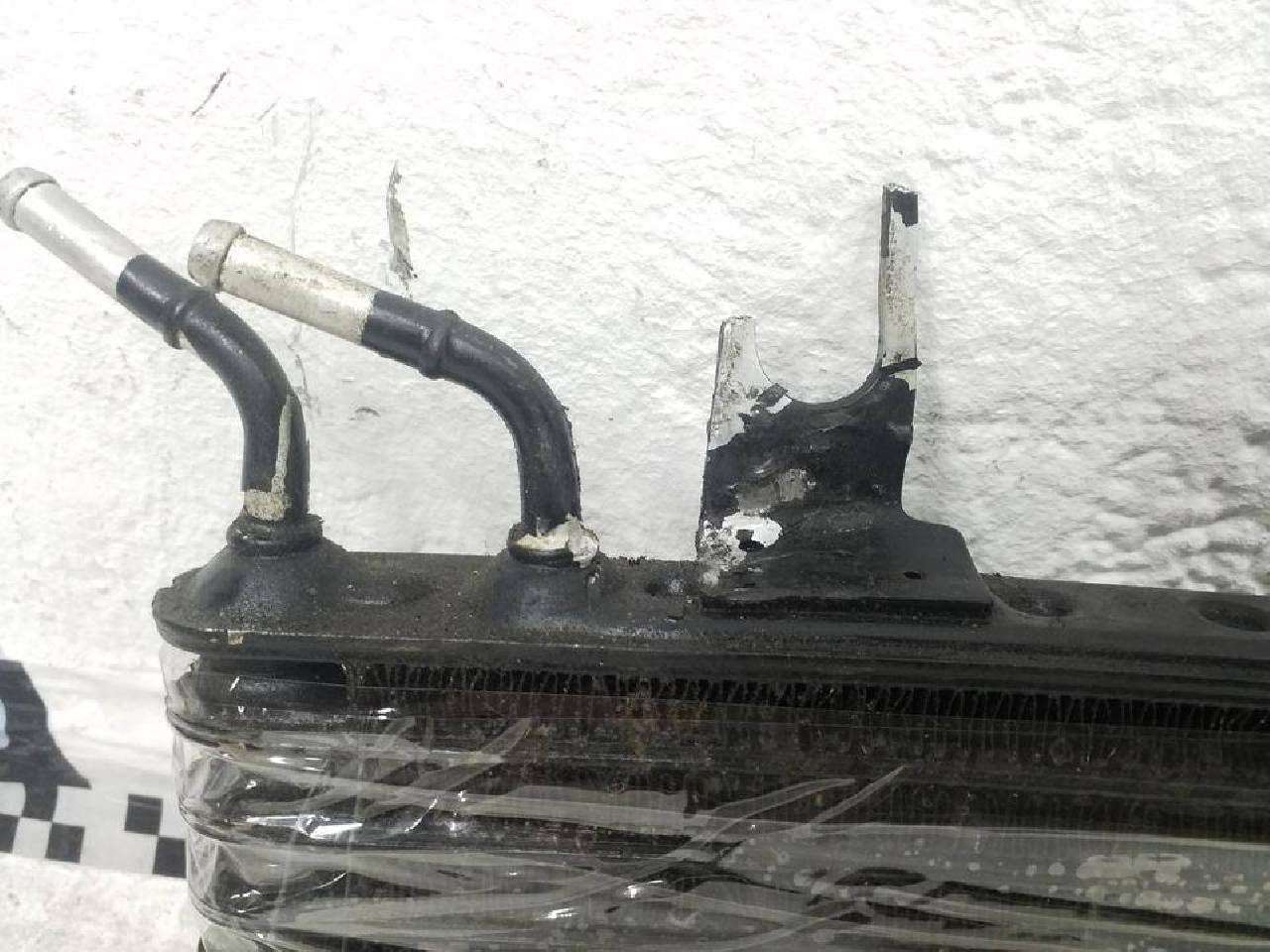 Состояние детали удовлетворительное. Потертость поверхности, замятость сот. Дефект крепления и металла на фото. Под ремонт