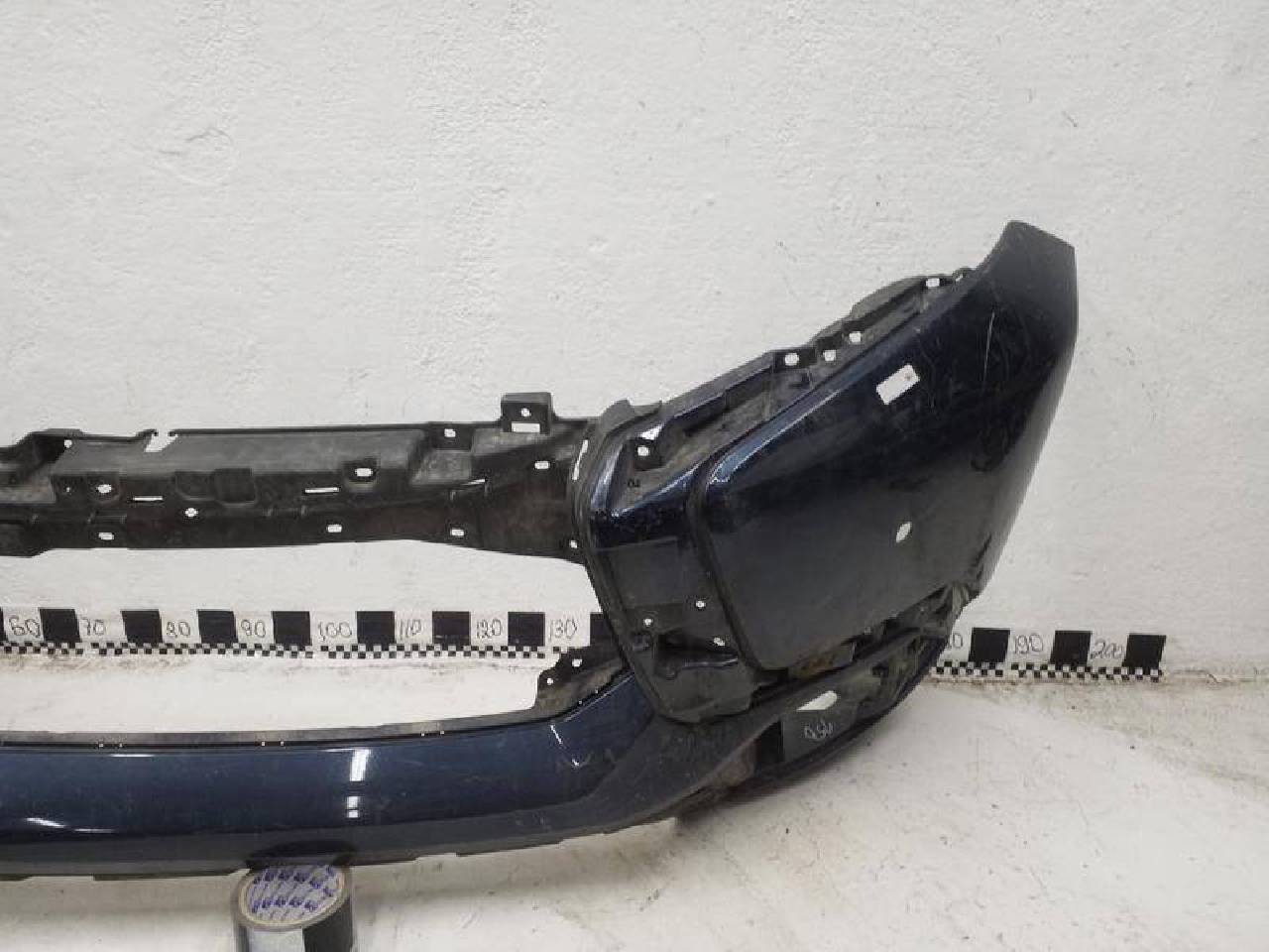 Состояние детали удовлетворительное. Синего цвета,потертость поверхности,под покраску,под парктроники, под омыватели. Дефект пластика на фото, крепления целые. Под ремонт