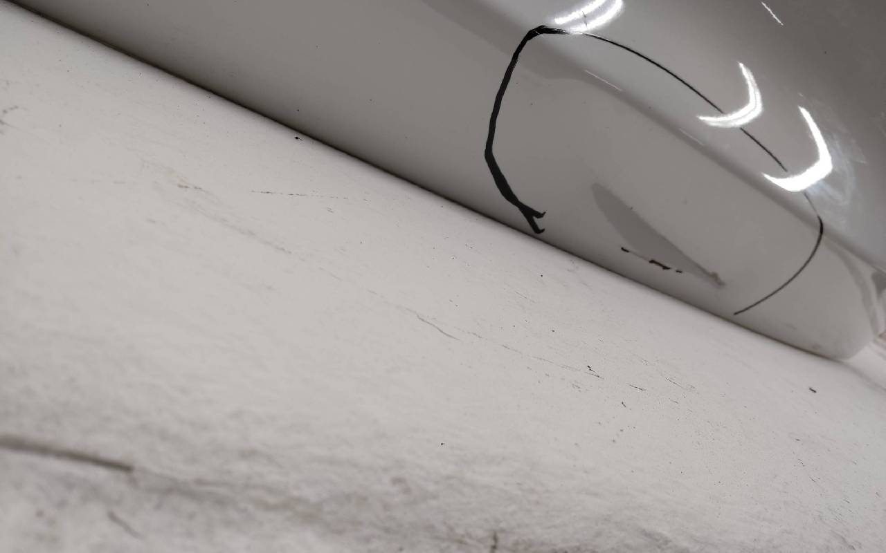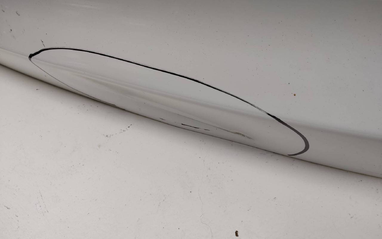 Состояние детали хорошее. Белого цвета, скол ЛКП. Небольшая вмятина в нижней части. Потребуется ремонт