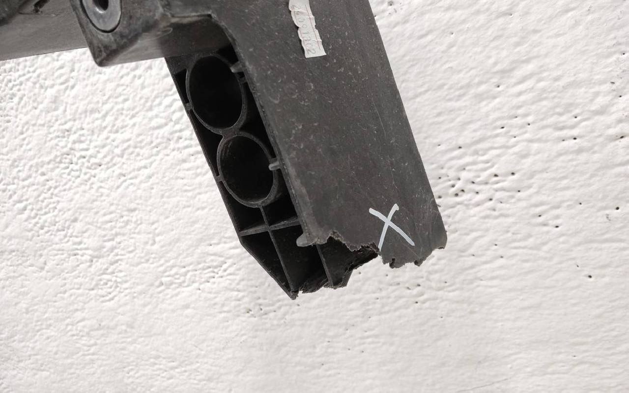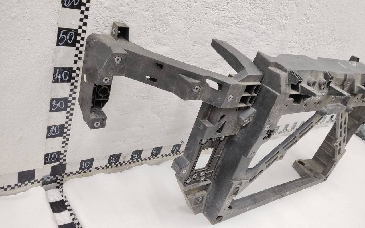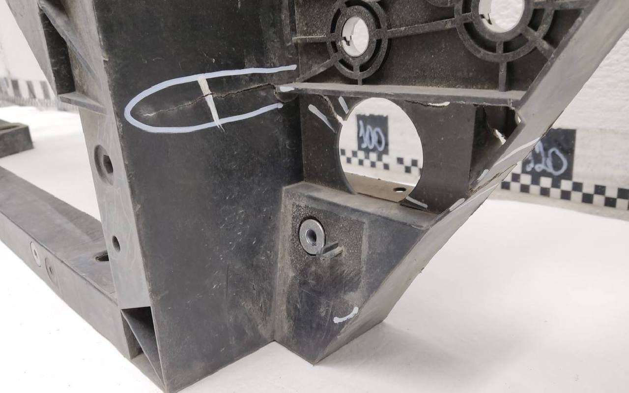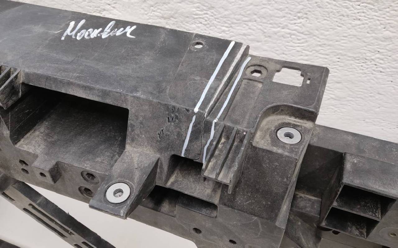 Состояние детали удовлетворительное. Небольшие трещины. В сборе с кронштейнами - отсутствует крепление на левом. Потребуется ремонт