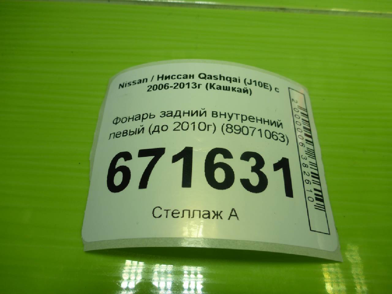 Деталь: Nissan Qashqai J10 - Фонарь задний внутренний левый (до 2010г) (89071063)