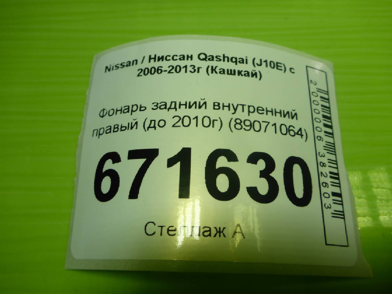 Деталь: Nissan Qashqai J10 - Фонарь задний внутренний правый (до 2010г) (89071064)