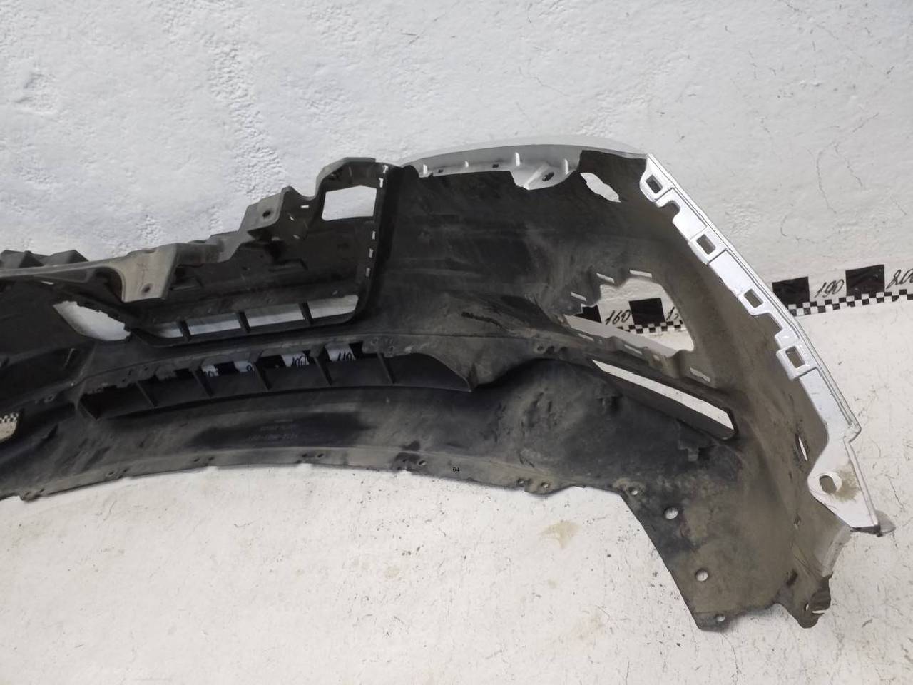 Состояние детали хорошее. Серебристого цвета под парктроники и омыватели фар, потёртости поверхности,дефект пластика на фото. Крепления целые. Под ремонт