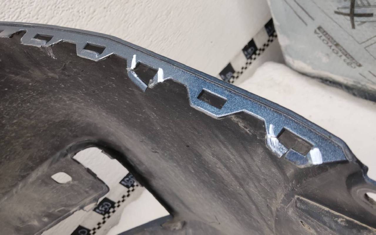Состояние детали хорошее. Синего цвета под парктроники. Небольшие царапины. Сломано три замка. Потребуется незначительный ремонт