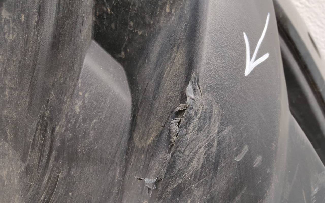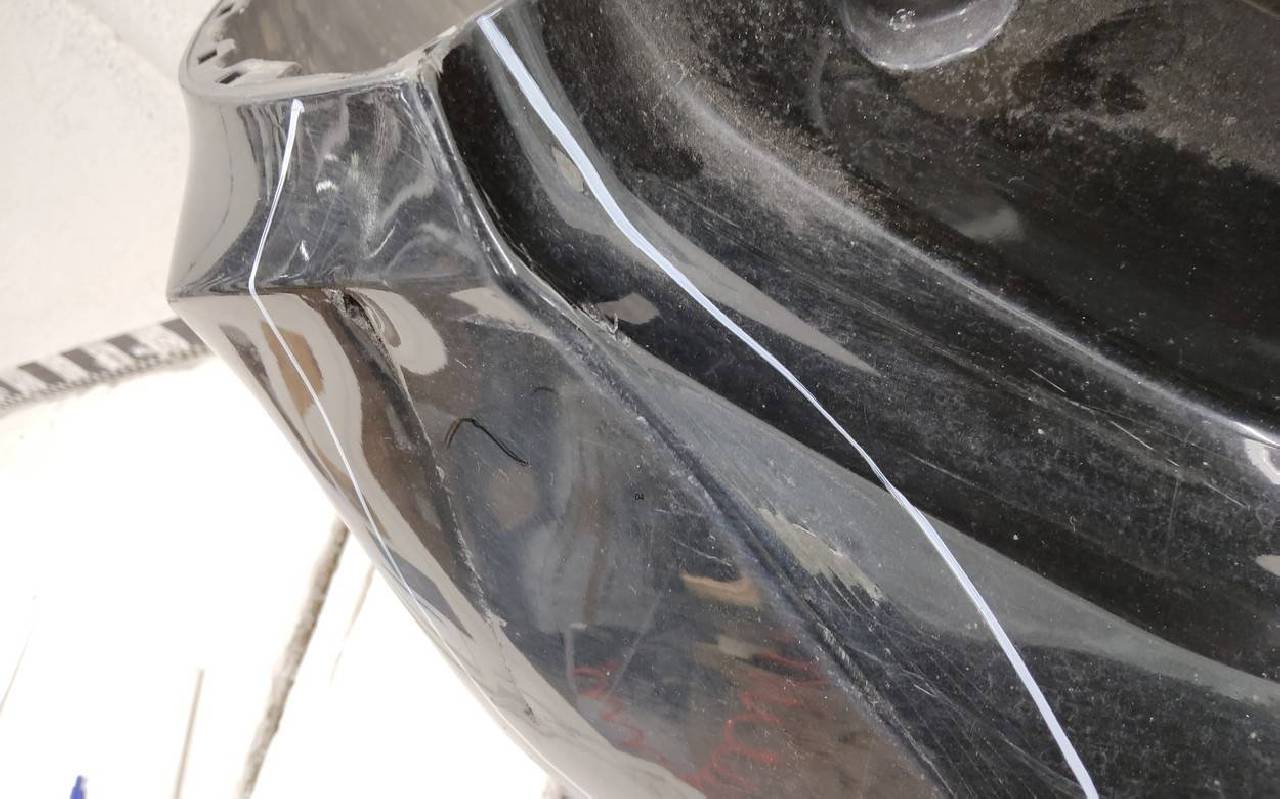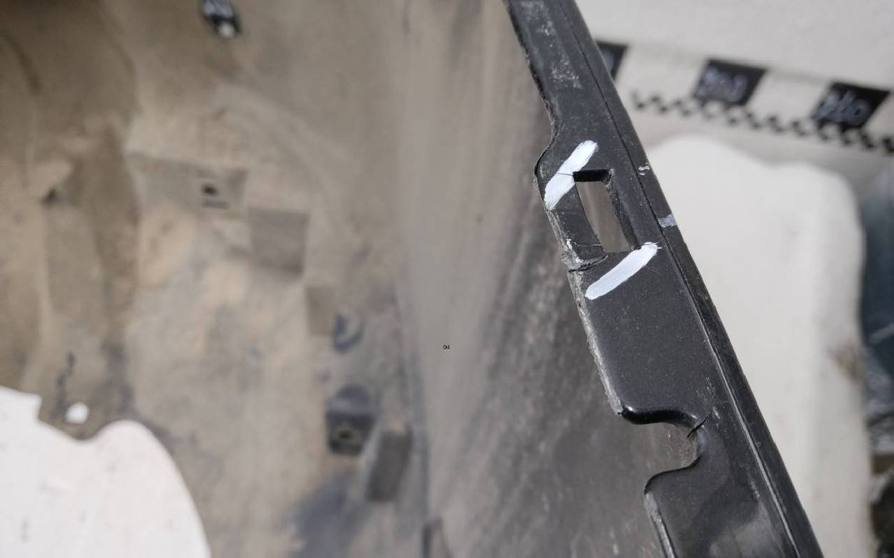 Состояние детали удовлетворительное. Чёрного цвета под парктроники. Вмятины, царапины. Дефект одного замка. Потребуется ремонт