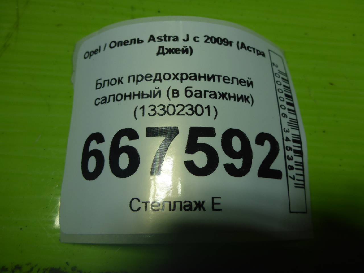 Деталь: Opel Astra J - Блок предохранителей салонный (в багажник) (13302301)