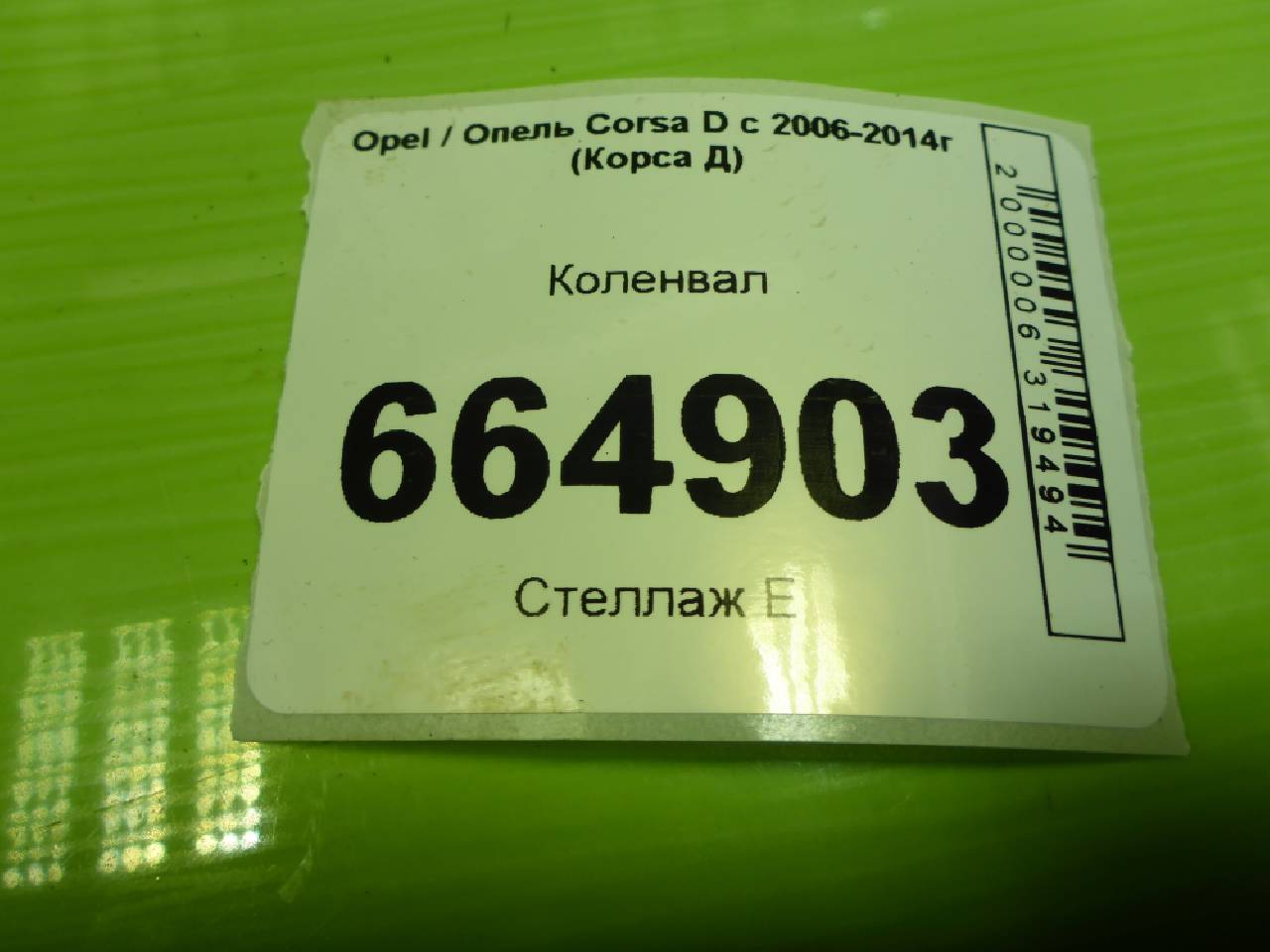 Деталь: Opel Corsa D - Коленвал (1.2л Z12XEP) (244617141)