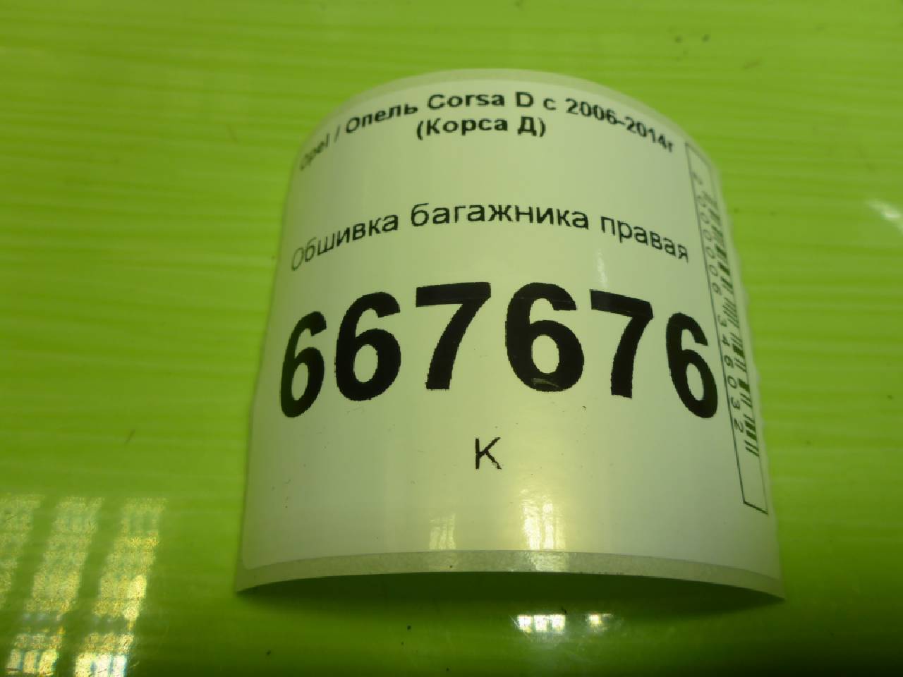 Деталь: Opel Corsa D - Обшивка багажника правая (3-х дверный кузов) (13230174)