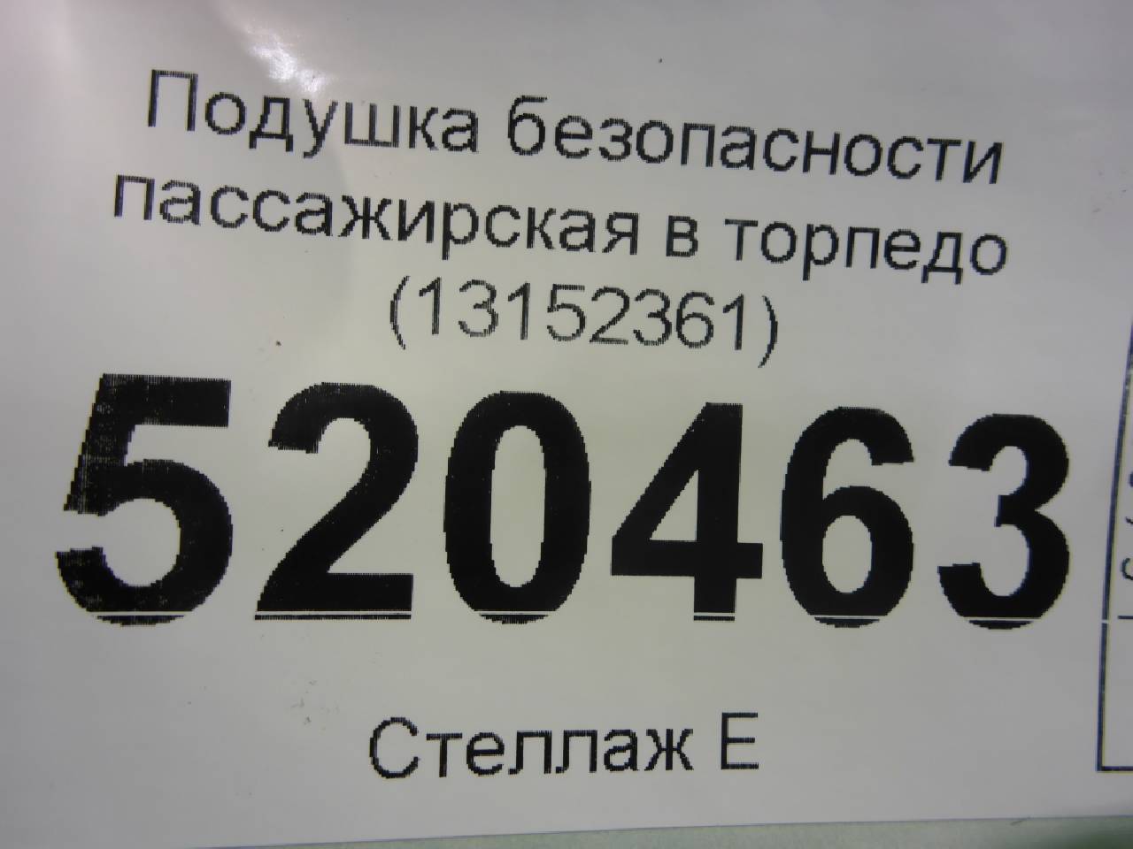 Наименование: Подушка безопасности пассажирская в торпедо (13152361)