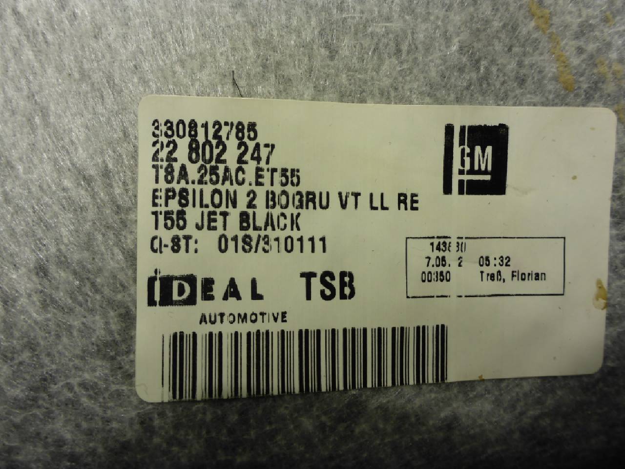 Деталь: Opel Insignia - Покрытие напольное (330812785)
