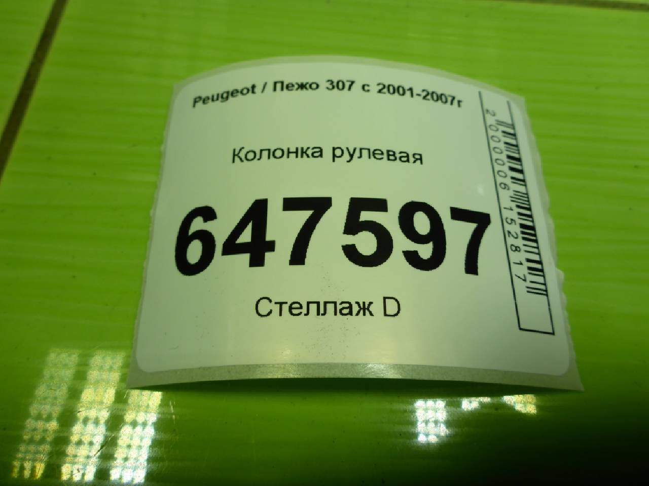 Главная > Peugeot > 307 > Peugeot 307 - Колонка рулевая - - RR647597