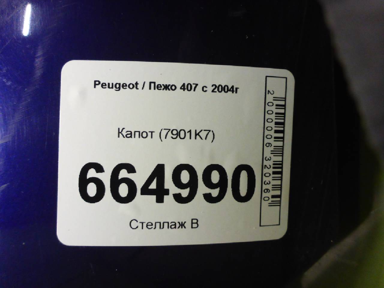 Деталь: Peugeot 407 - Капот (7901K7)